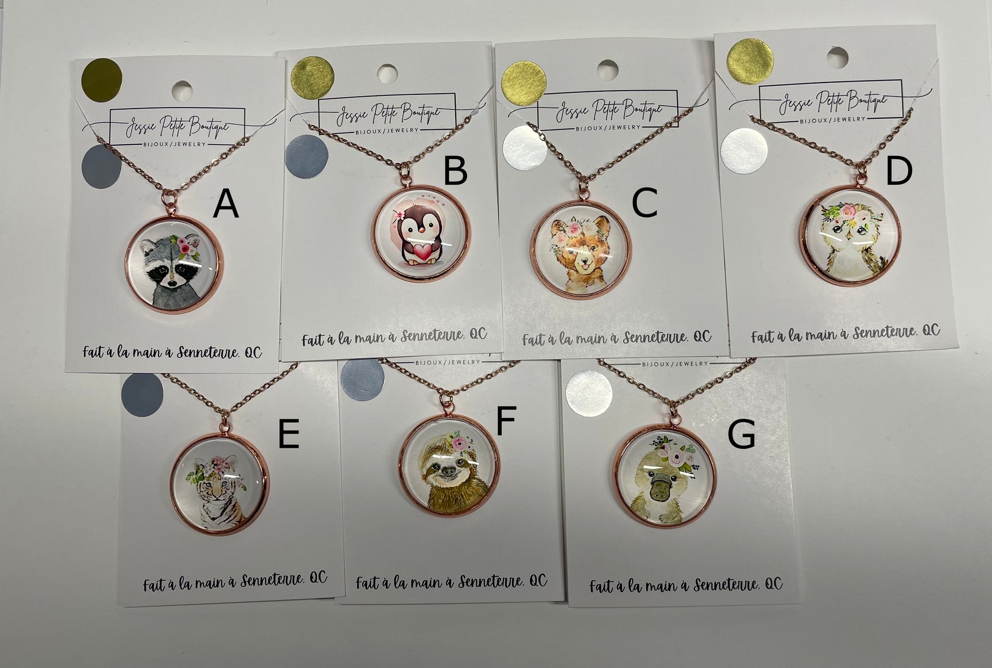 Offert en 7 modèles d’animaux différents, chaque collier possède son propre caractère tout en conservant une esthétique harmonieuse et raffinée. La chaîne est munie d’un fermoir à mousqueton pour un port sécuritaire et confortable.