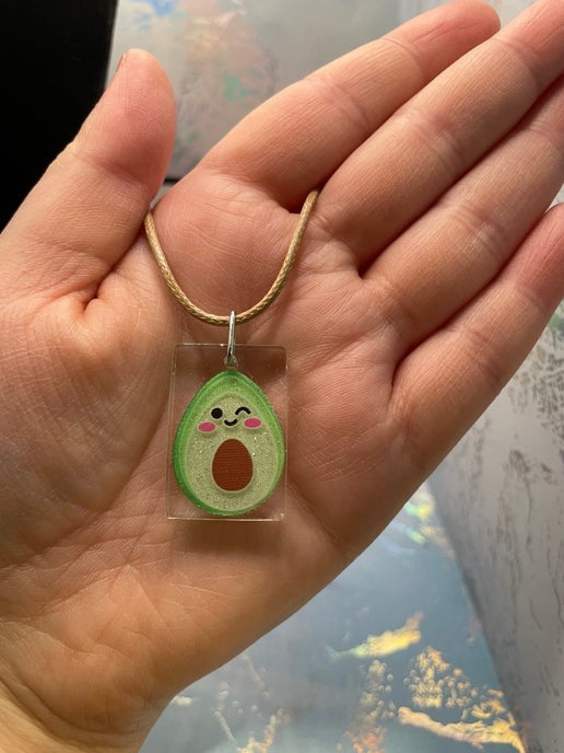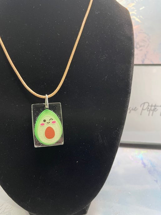 Ce collier pendentif avocat en résine, original et original, est parfait pour toutes celles qui ont un sens de l'humour et du style ! Ce charmant avocat est enchâssé dans une résine transparente et suspendu à un cordon beige qui met en valeur ses teintes naturelles. Léger et confortable, c'est un bijou charmant à porter au quotidien ou à offrir en cadeau.
