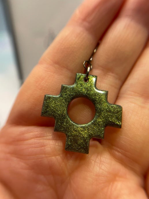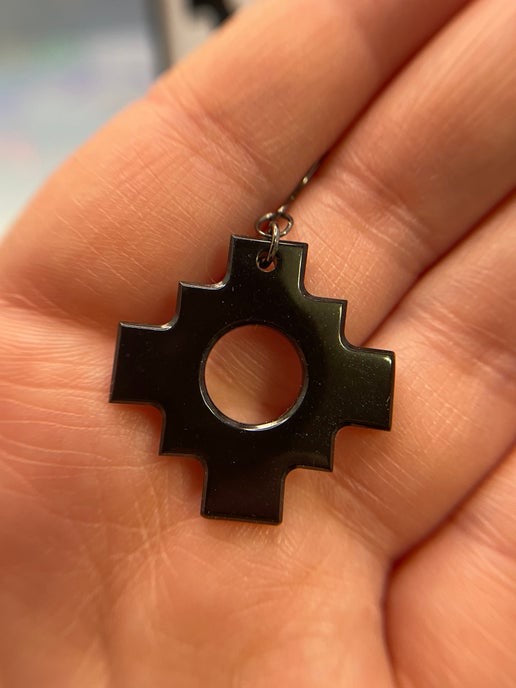 Ajoutez une touche d'audace et d'originalité à votre collection avec ces boucles d'oreilles aztèques. Dotées d'une forme carrée en escalier d'inspiration aztèque, ces boucles d'oreilles sont fabriquées en résine avec de la poudre mica, ce qui leur confère un fini riche et texturé.
