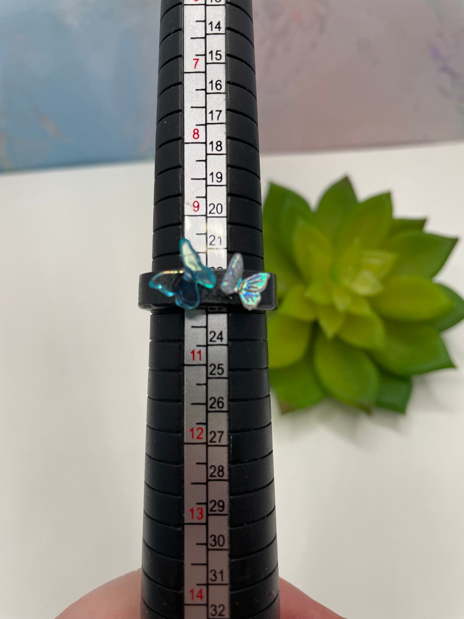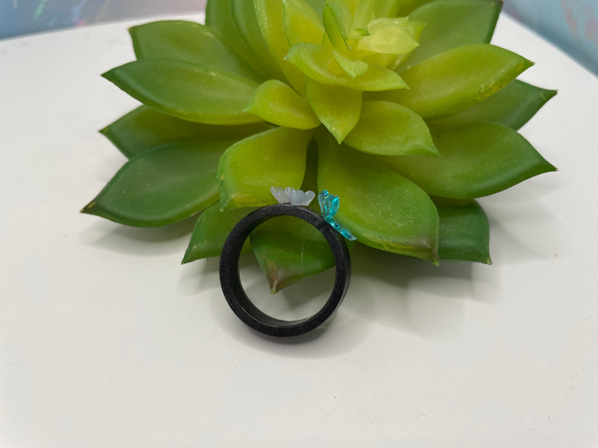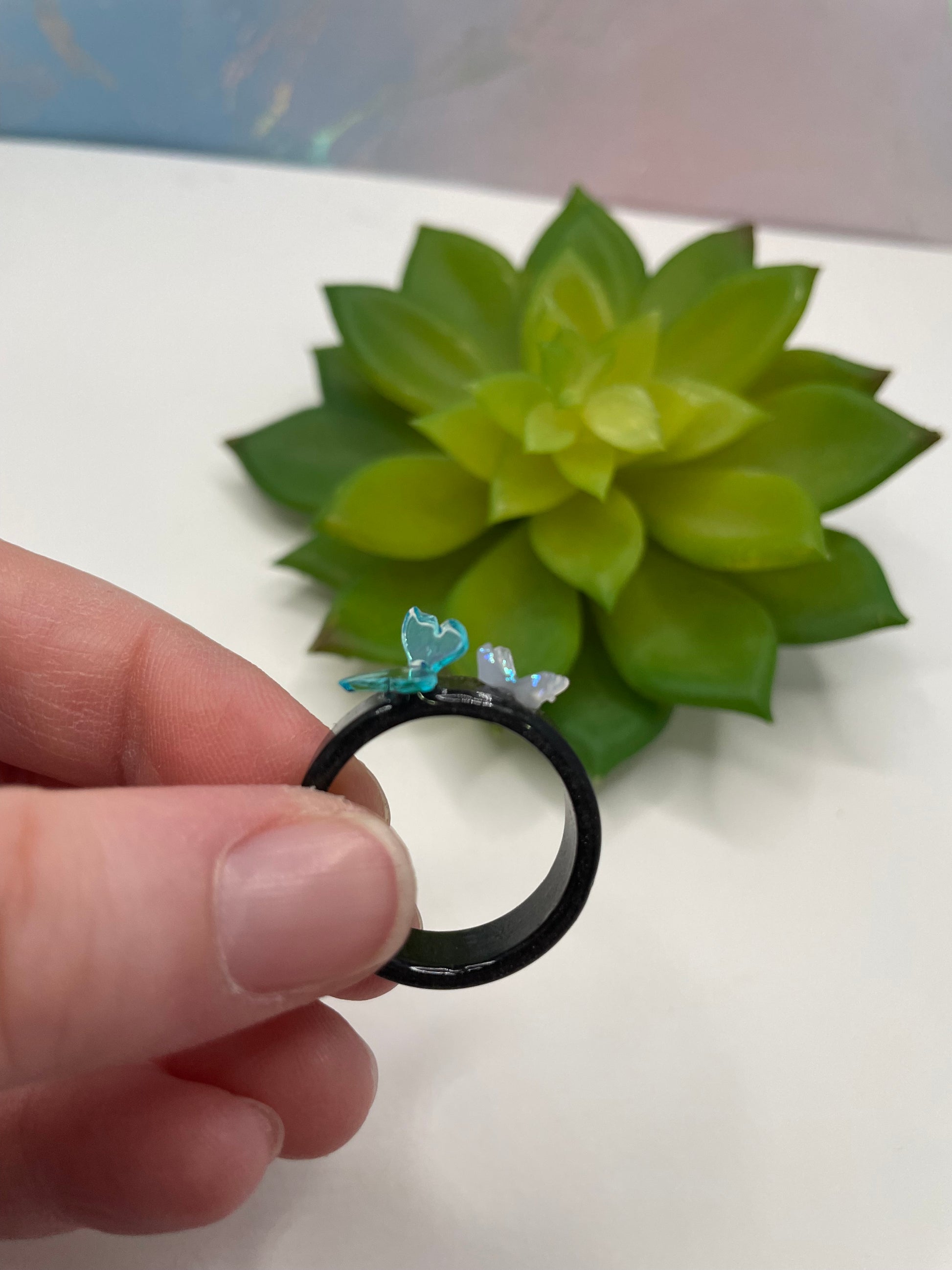Bague noir en résine avec papillons- Taille 10US