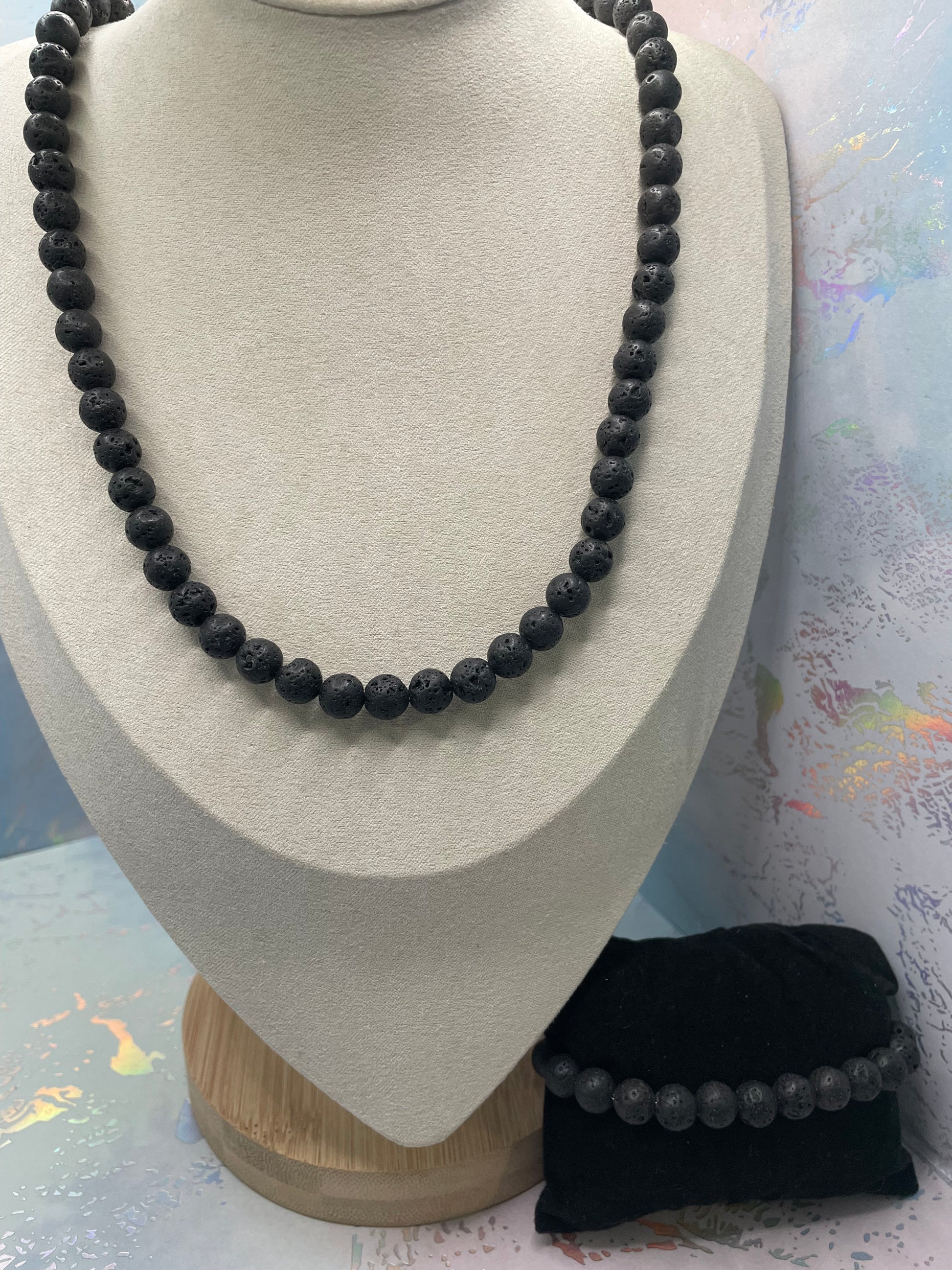 Ensemble Collier et Bracelet en Pierre de Lave Noire