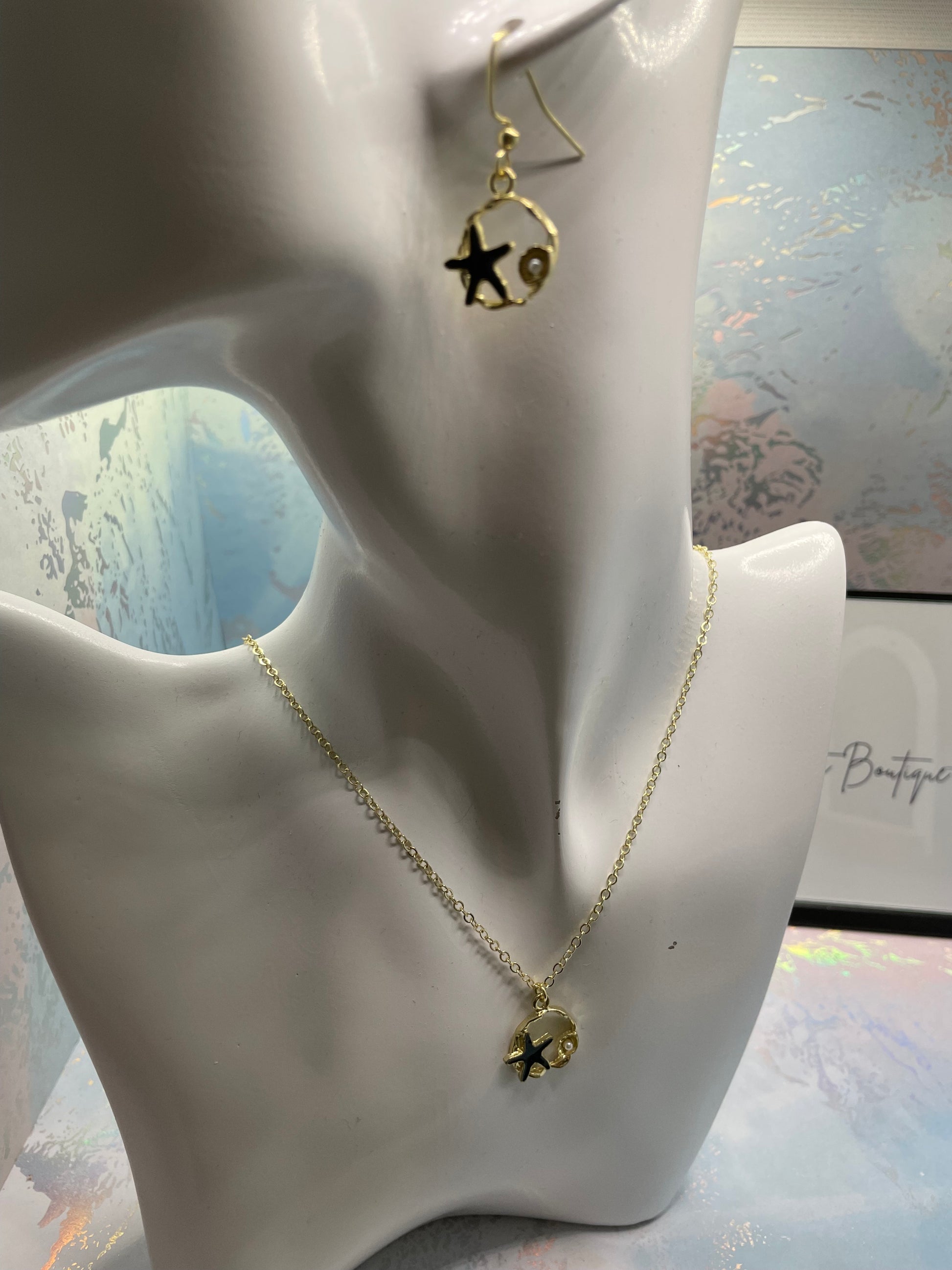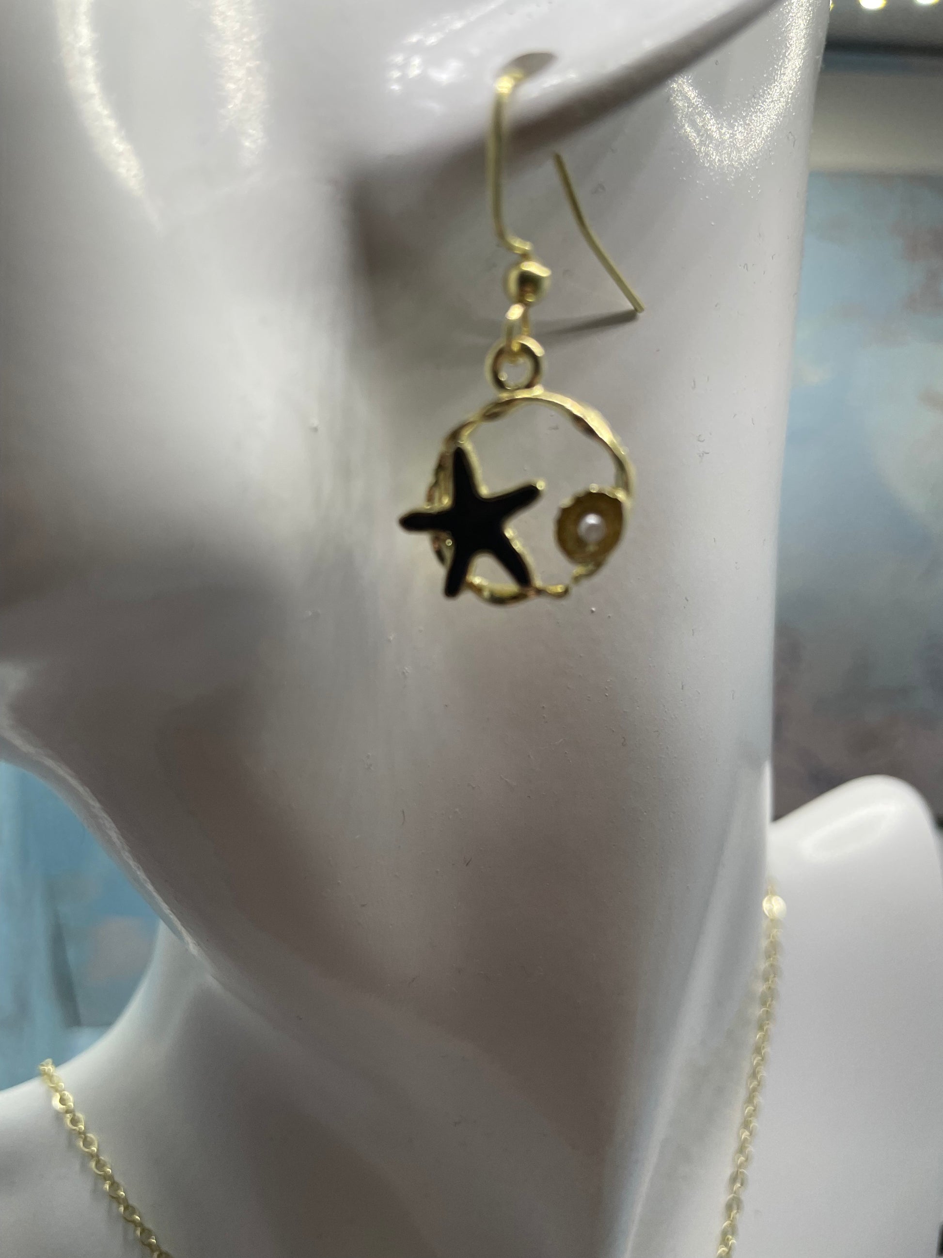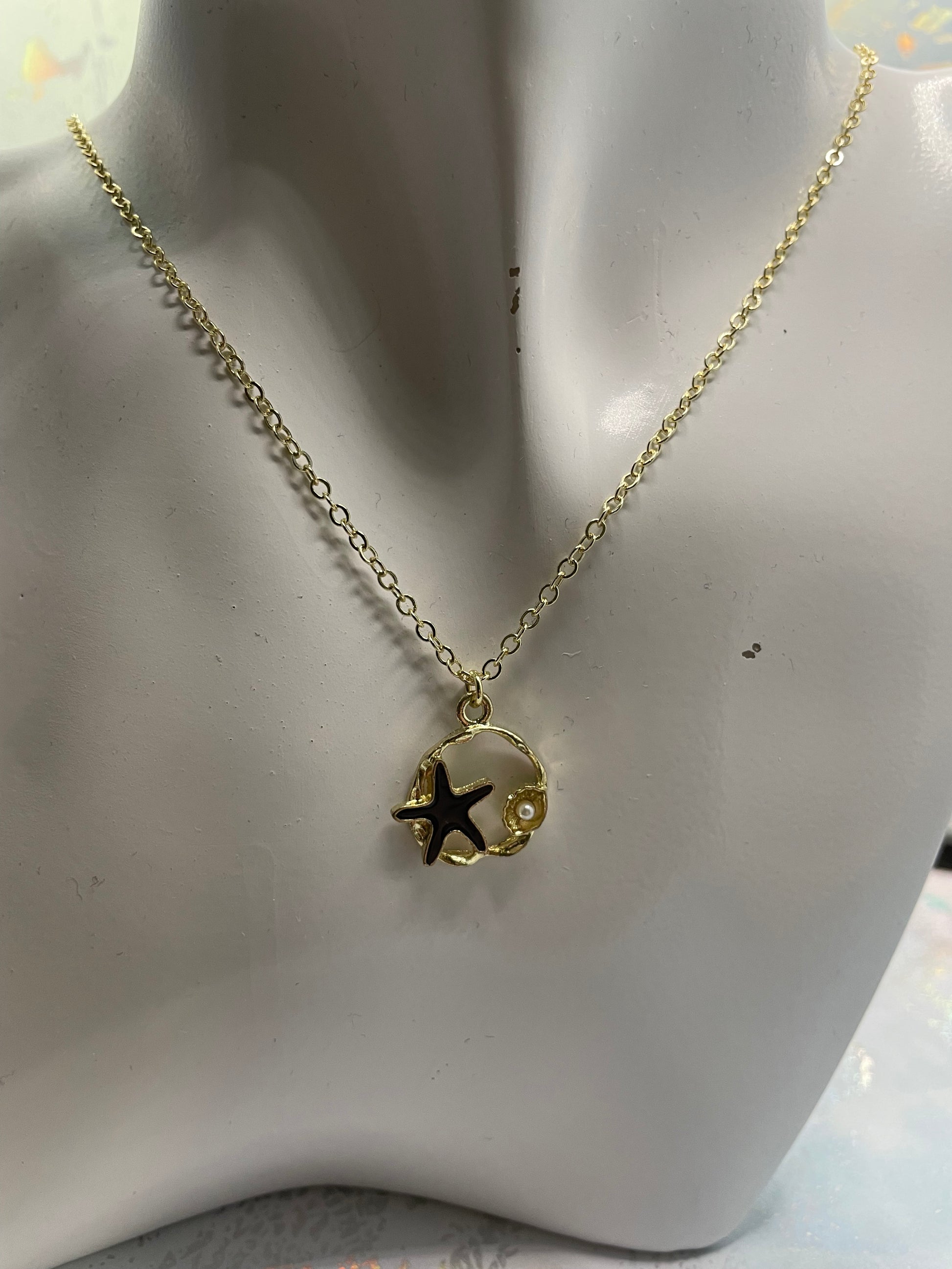Adoptez une touche d'océan avec ce magnifique collier étoile de mer noire sur cercle doré et perles . Ce superbe bijou arbore une délicate étoile de mer noire élégamment sertie sur un cercle doré étincelant, sublimé par une magnifique perle blanche.