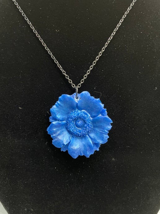 Ajoutez une touche de couleur à votre tenue avec notre magnifique collier Anémone Bleue. Doté d'un magnifique pendentif en forme de fleur, réalisé en résine et poudre mica bleu vif, ce bijou capture l'essence de la nature dans un accessoire époustouflant.