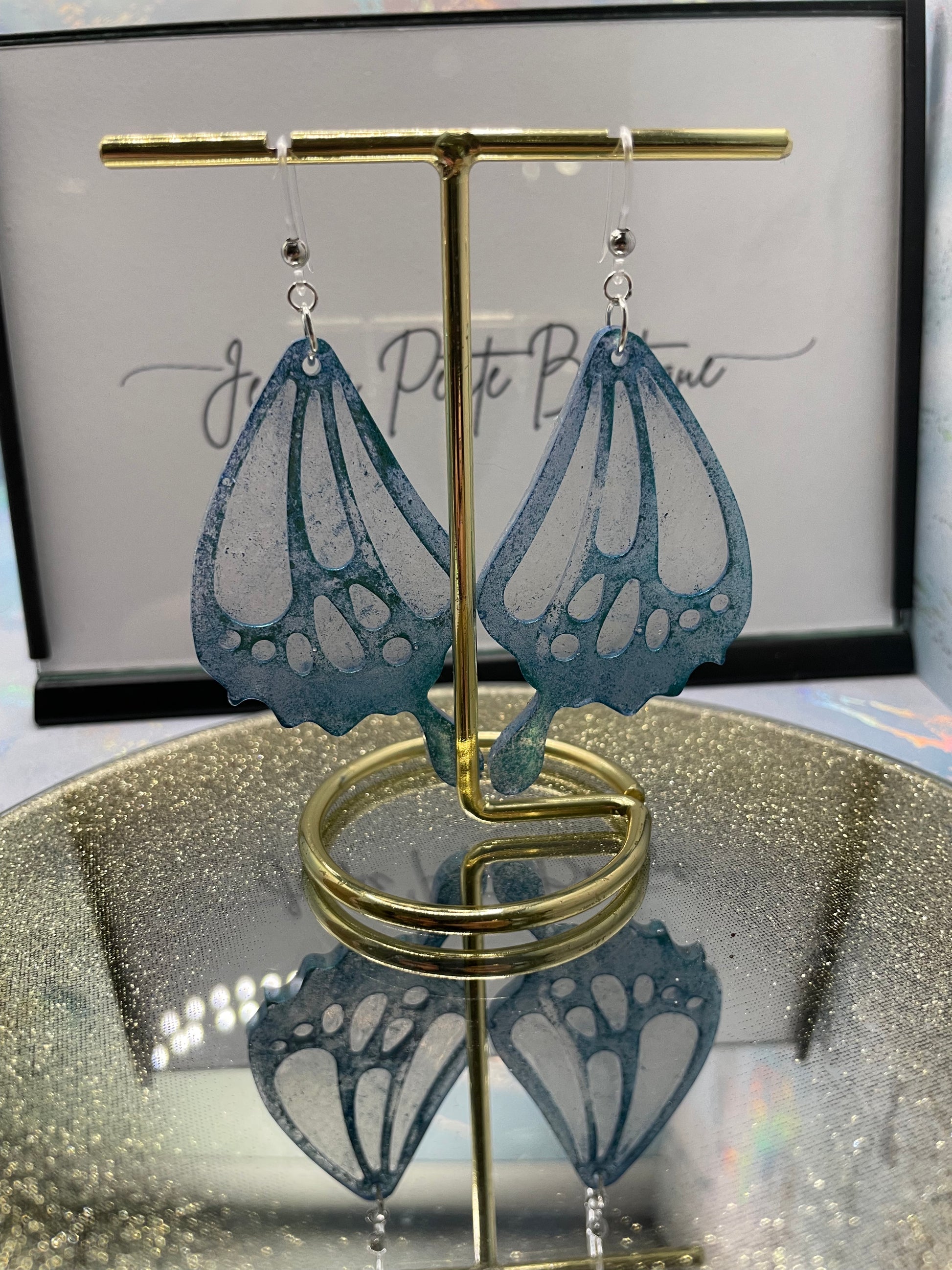 Boucles d'oreilles ailes de papillon bleues – plastique/hypoallergénique