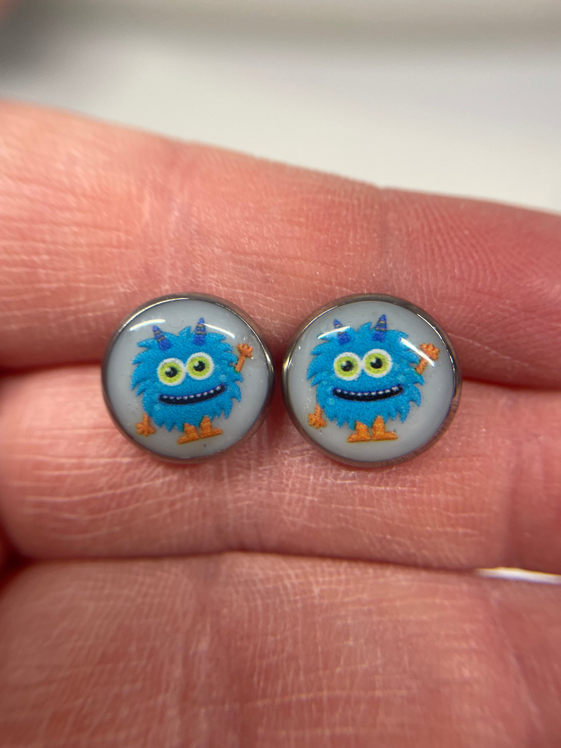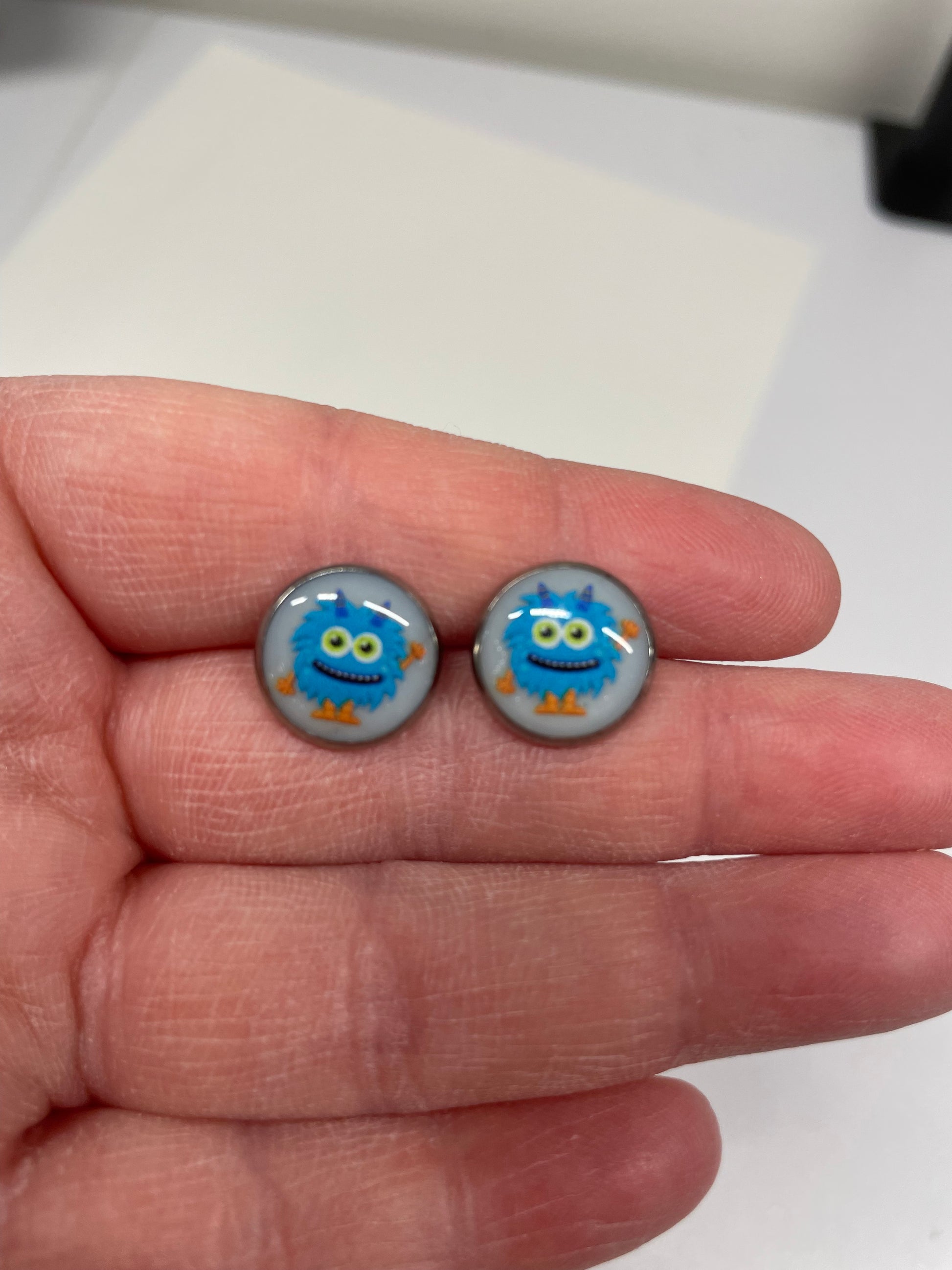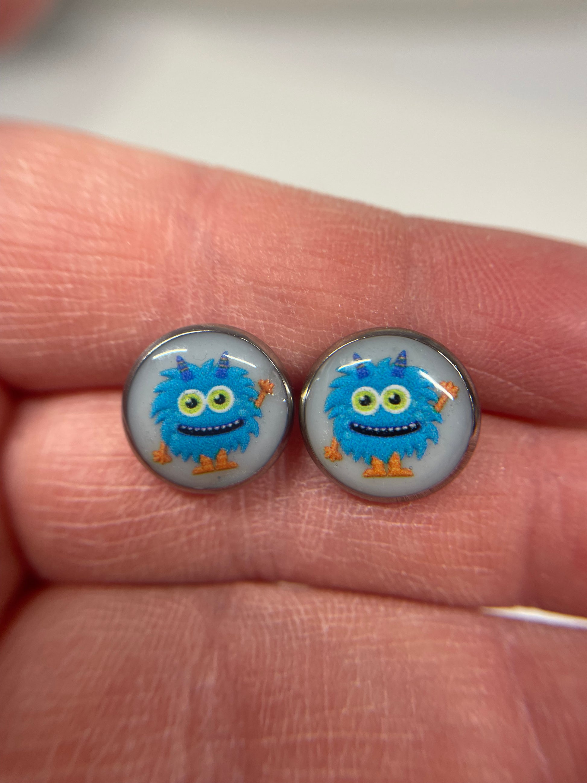 Ces boutons d’oreille présentent une adorable illustration de petit monstre bleu, soigneusement protégée sous une couche de résine brillante pour une finition lisse et résistante. Leurs couleurs vives et leur expression amusante apportent une touche ludique à n’importe quelle tenue.