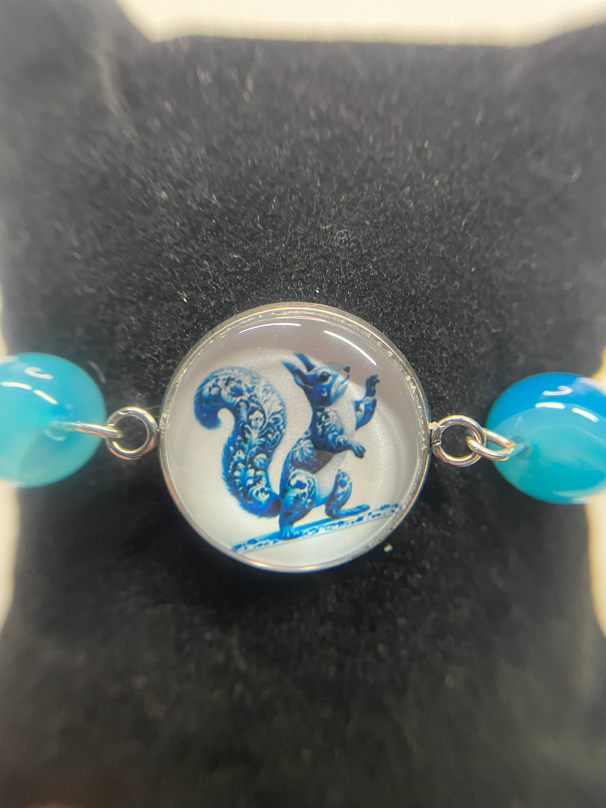 Bracelet Ecureuil Bleu Cabochon-Acier Inoxydable
