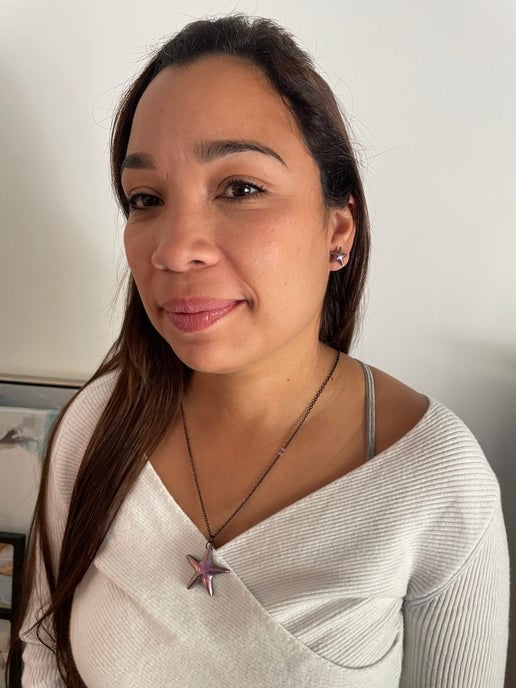 Cette captivante parure de bijoux étoile de mer bleue allie la beauté de l'océan à un design minimaliste. Le collier est fabriqué en résine et poudre de mica pour un éclat envoûtant. Idéale pour les amoureux de l'océan, ce collier apportera une touche de nature à votre garde-robe.