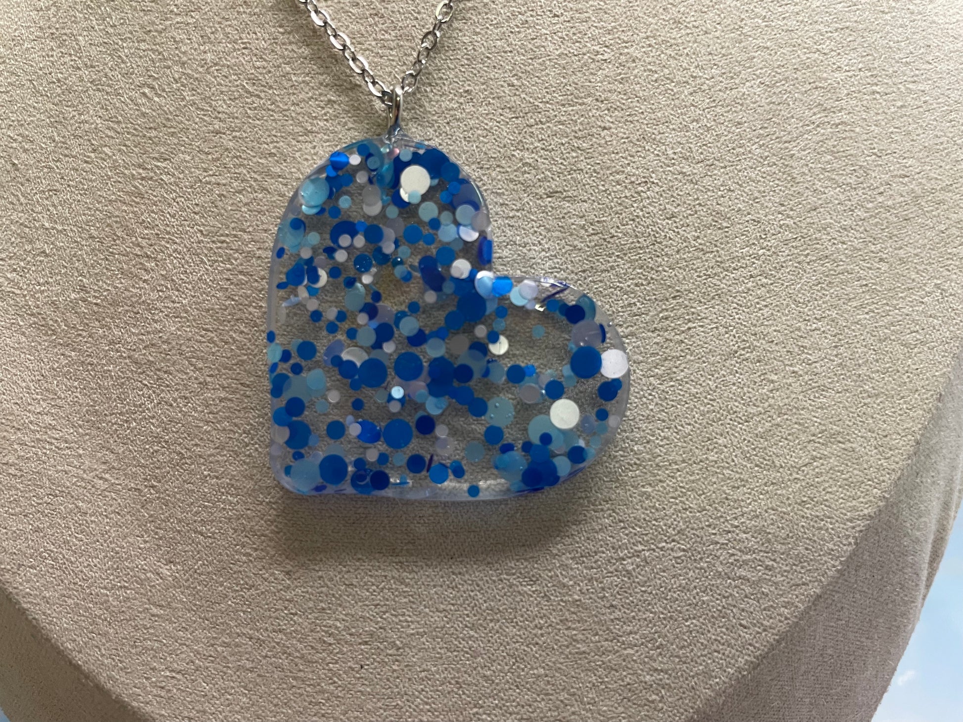 Collier cœur confettis bleu et blanc