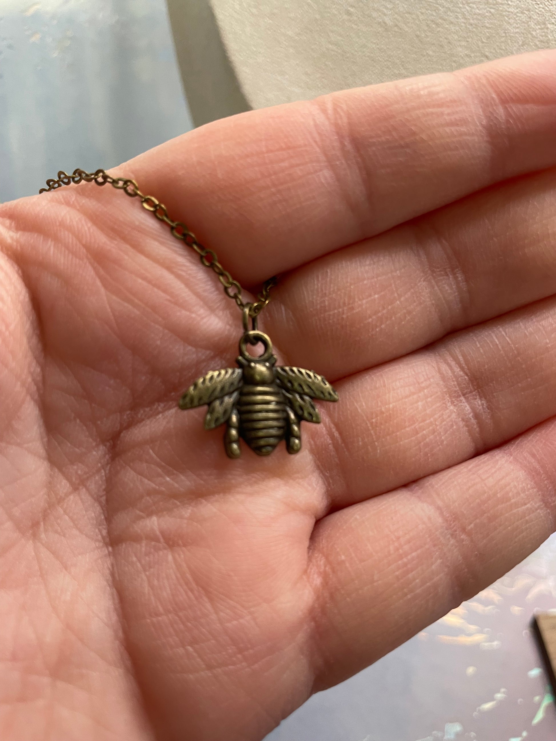 Cet ensemble délicat met en valeur un pendentif en forme d’abeille finement détaillé, dans une teinte bronze chaleureuse au charme intemporel. Les détails sculptés apportent du caractère tout en conservant une légèreté agréable au porté.