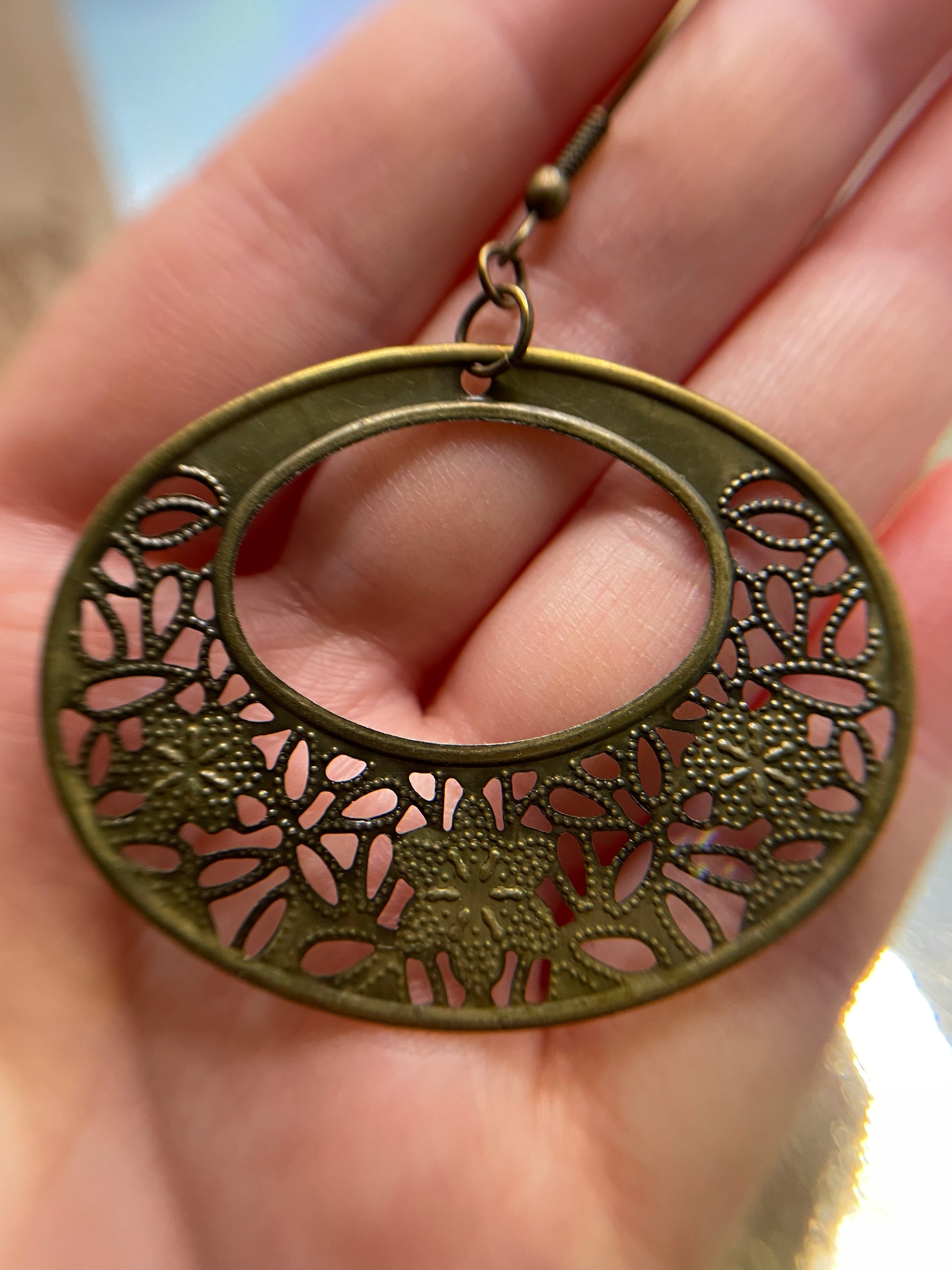 Ces magnifiques boucles d'oreilles ovales en bronze arborent un magnifique motif floral, ajoutant une touche d'élégance à toutes vos tenues. Légères (4.81 g seulement), elles sont confortables à porter et affichent une allure élégante. Parfaites pour les occasions décontractées comme plus formelles !