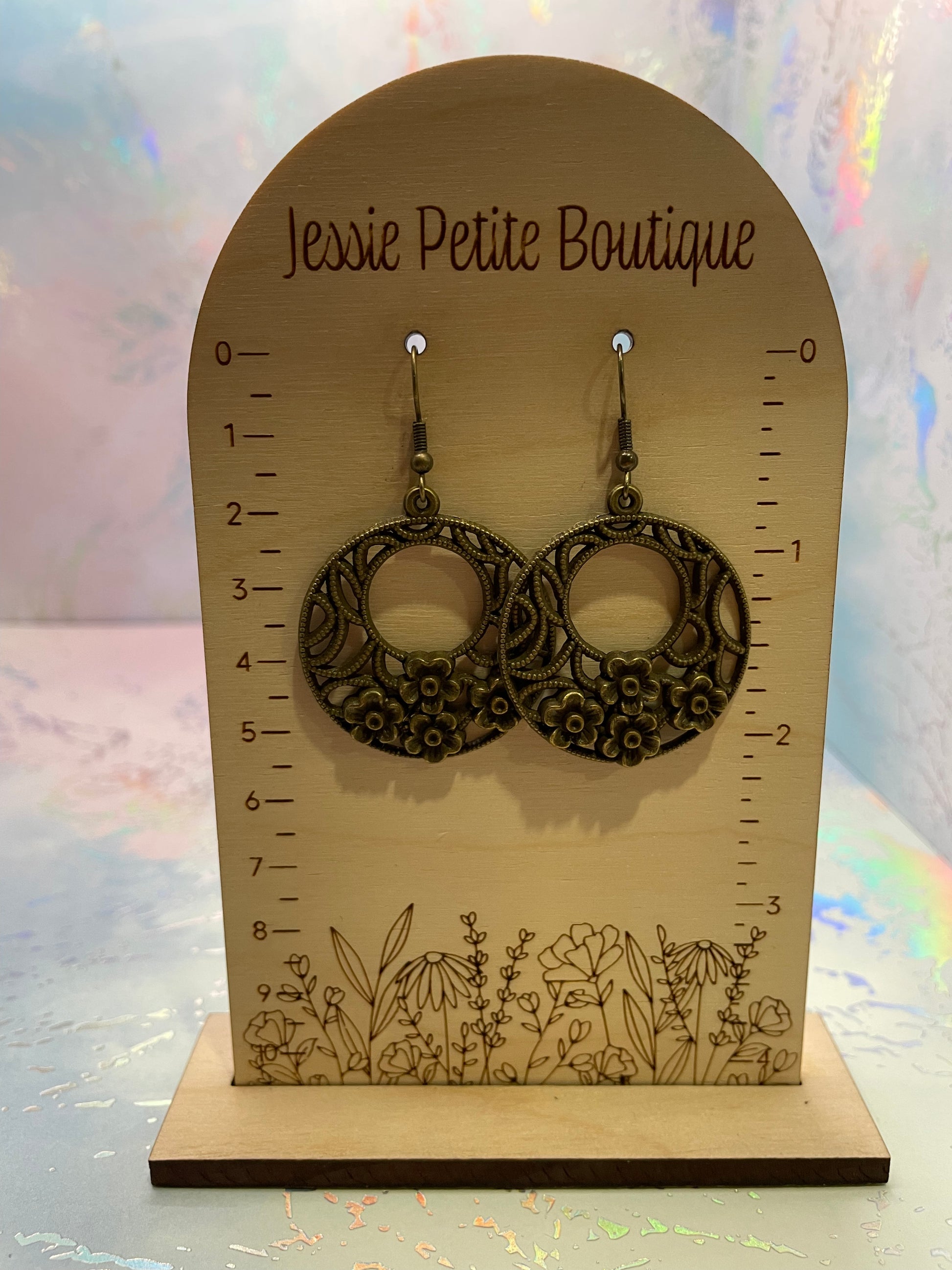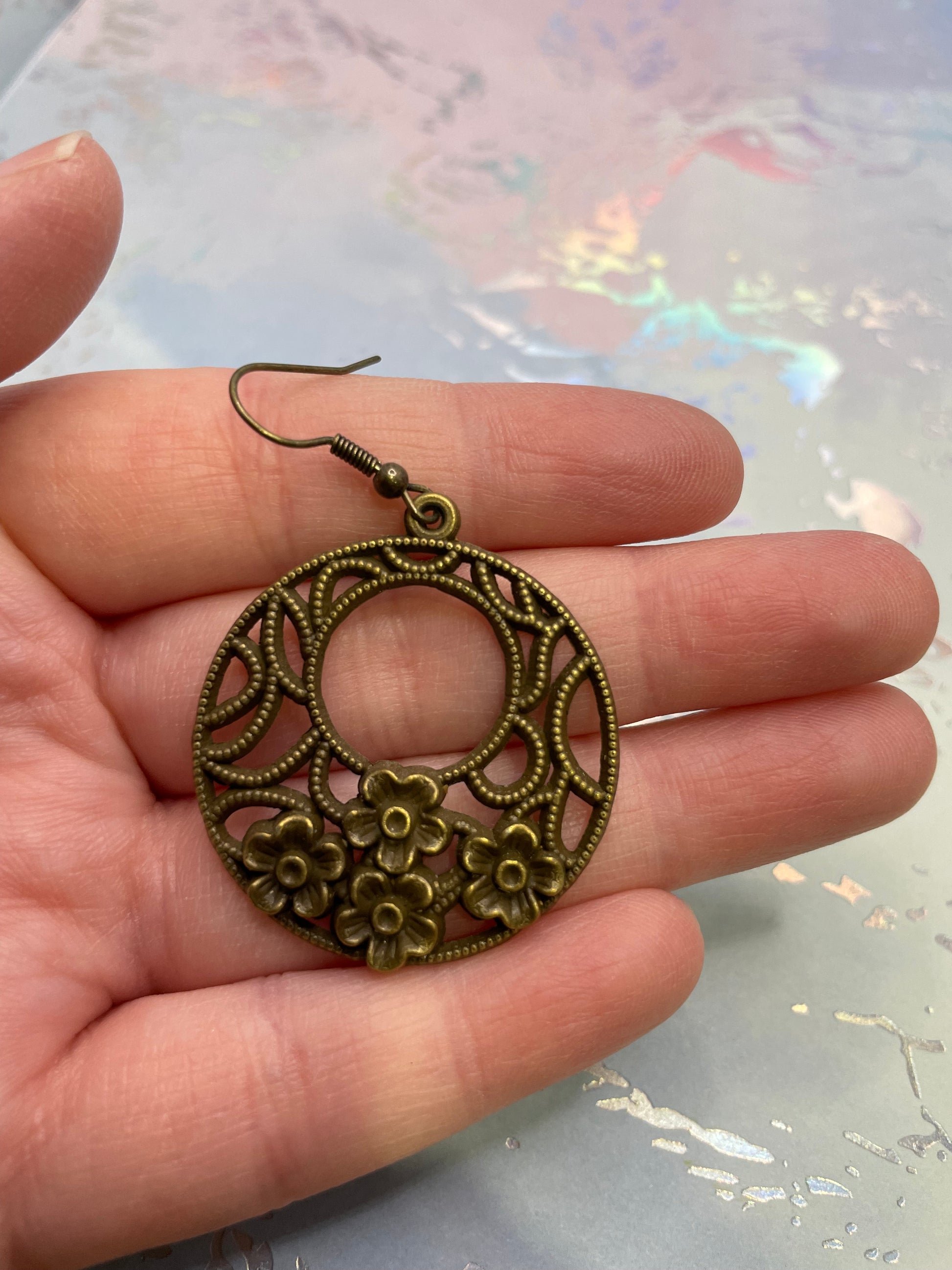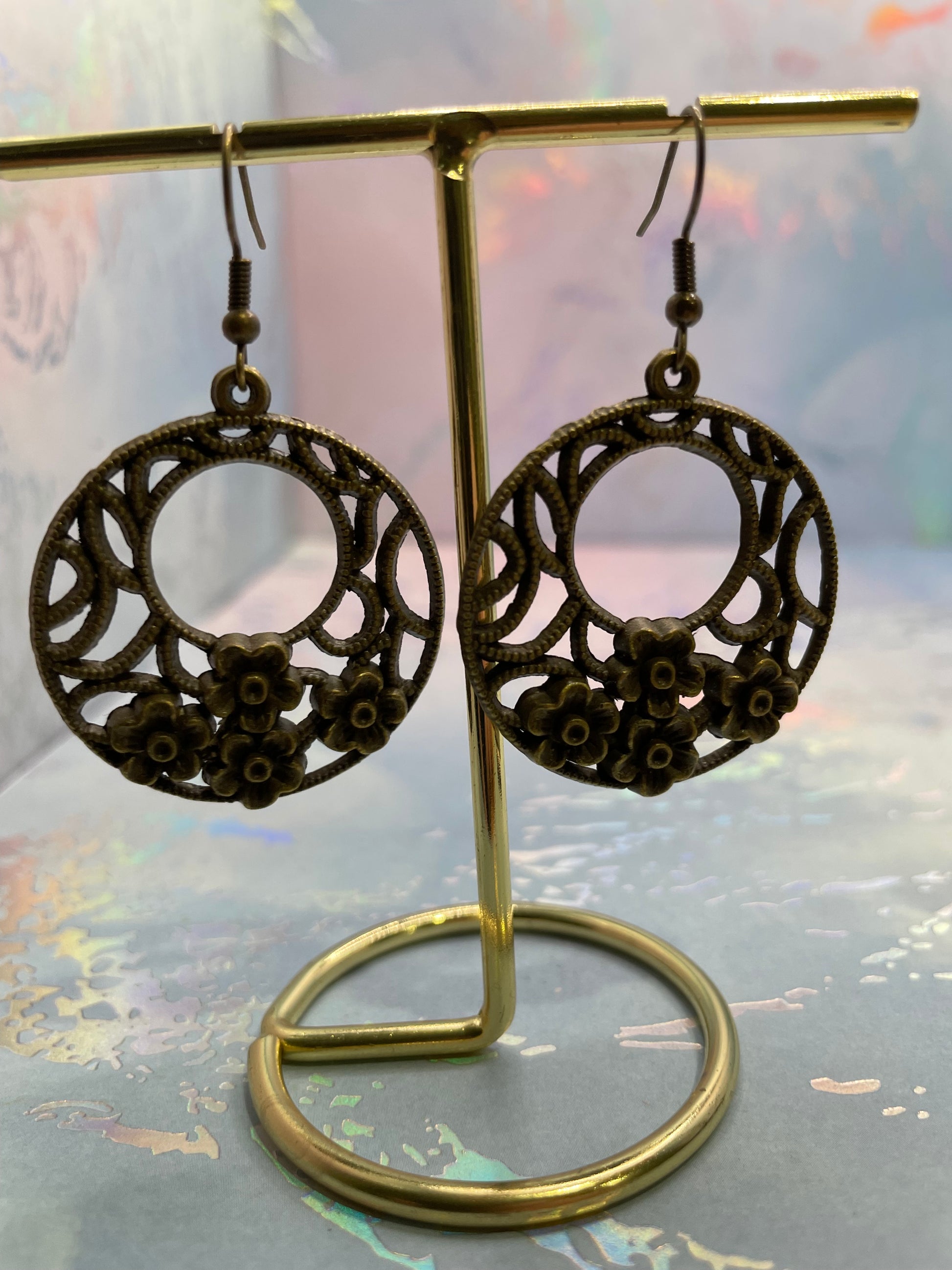 Boucles d'oreilles cercle avec fleurs en Bronze