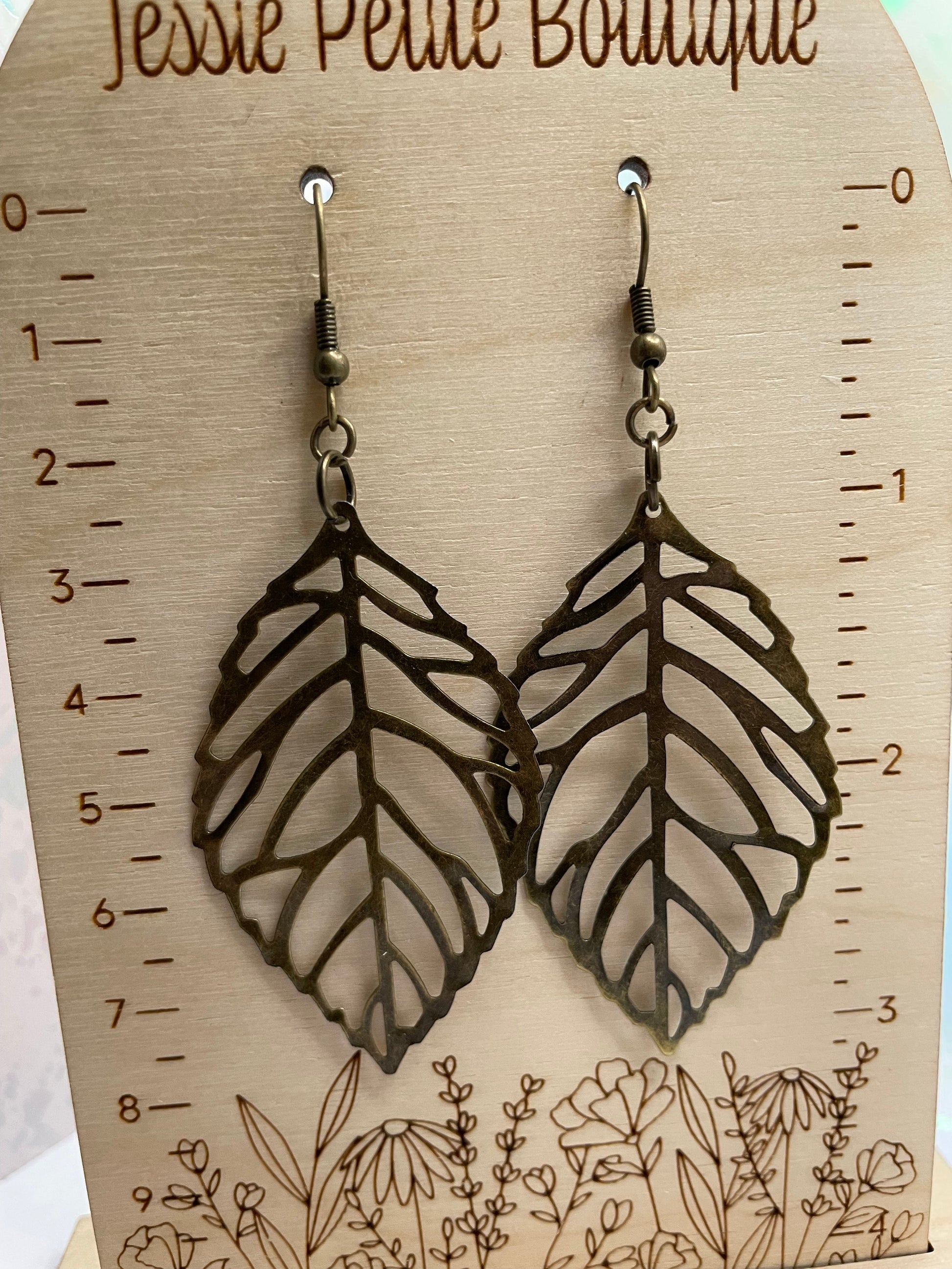 Boucles d'oreilles feuille bronze pendante