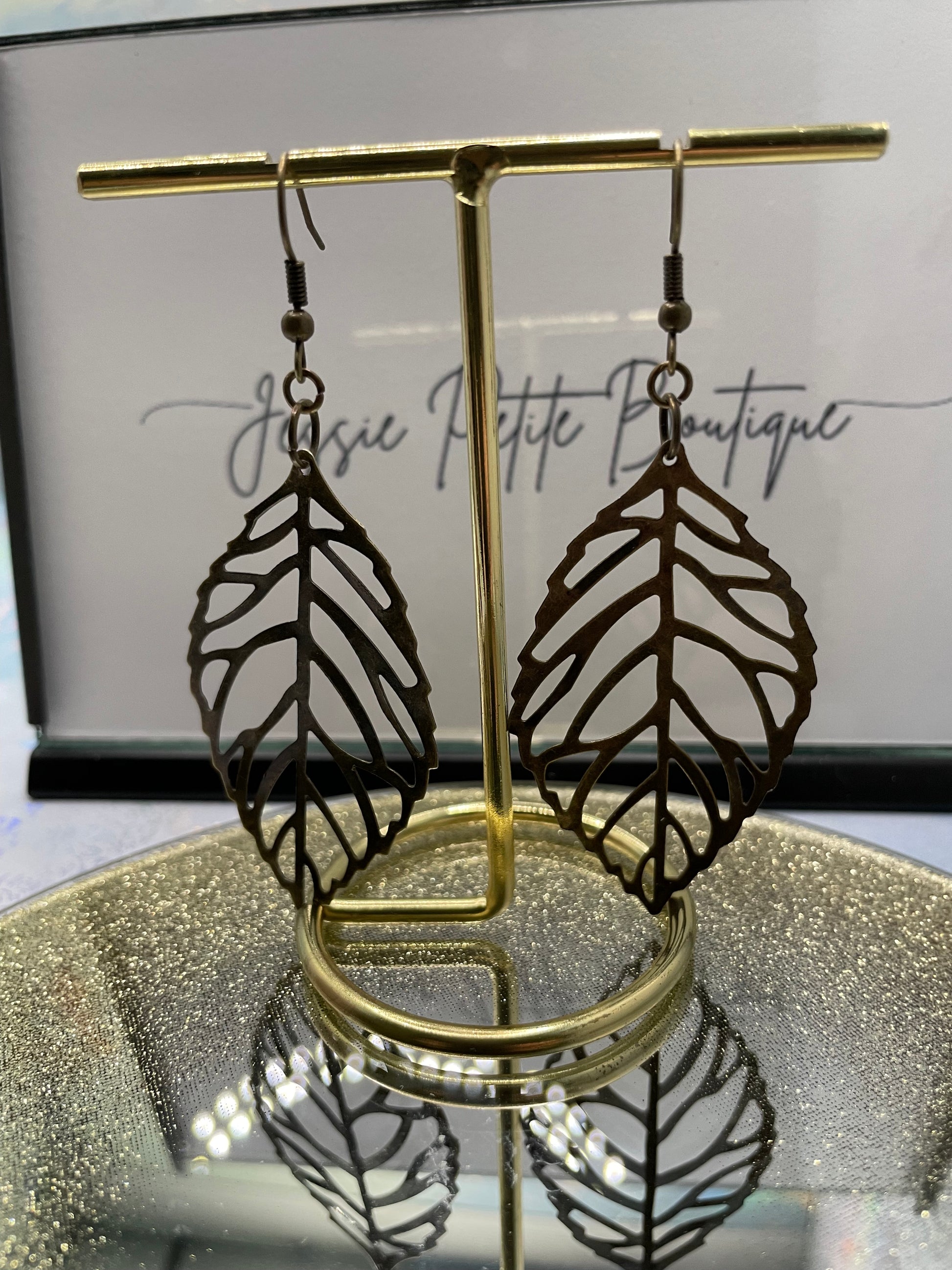 Ajoutez une touche chic et inspirée de la nature à votre collection avec ces superbes boucles d'oreilles en feuille de couleur bronze, parfaites pour rehausser n'importe quel look avec leur charme intemporel.