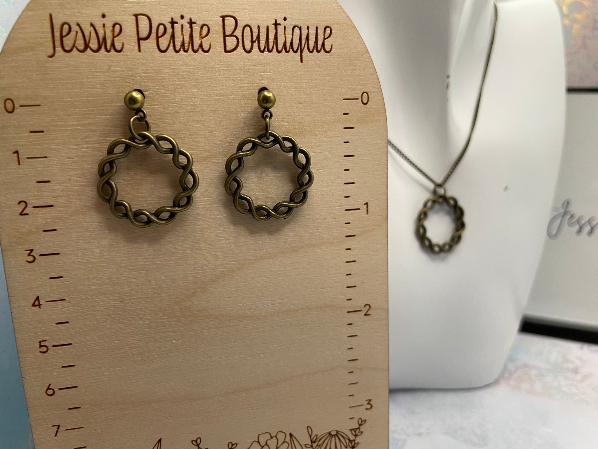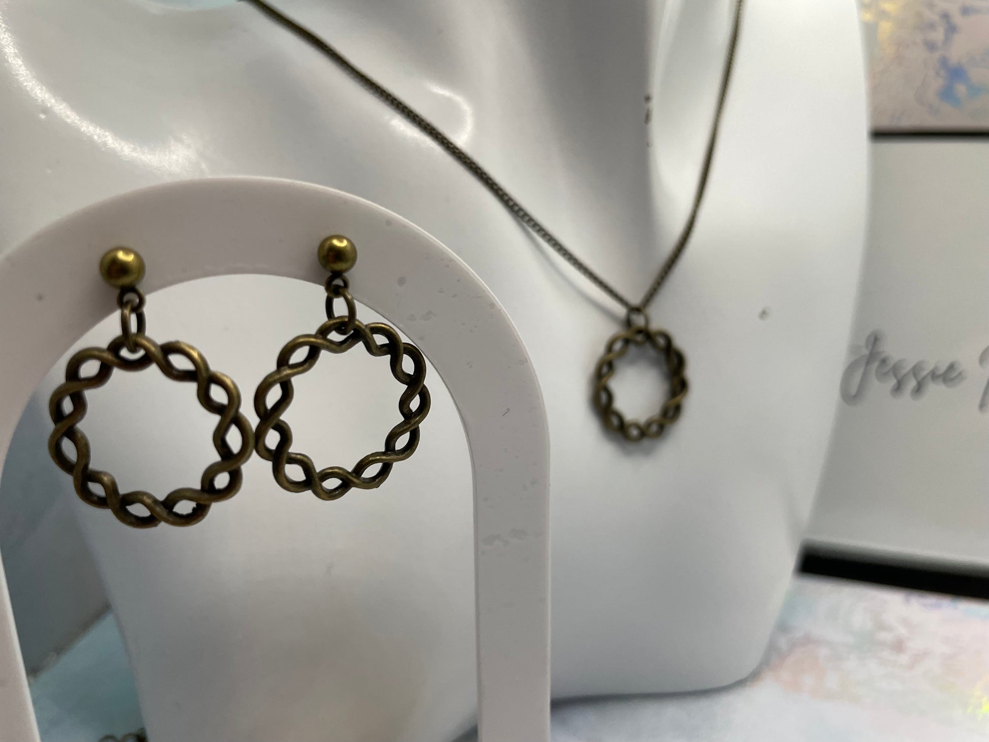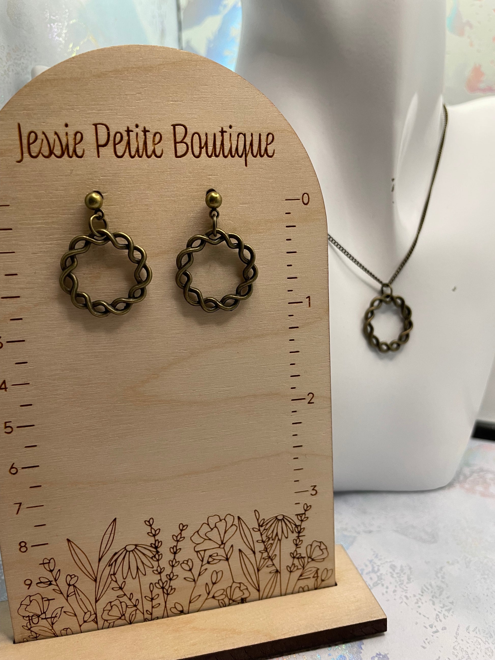 Cette parure de bijoux est confectionnée dans une magnifique teinte bronze, avec une forme ronde torsadée unique. Idéale pour ajouter une touche vintage à toutes vos tenues !
