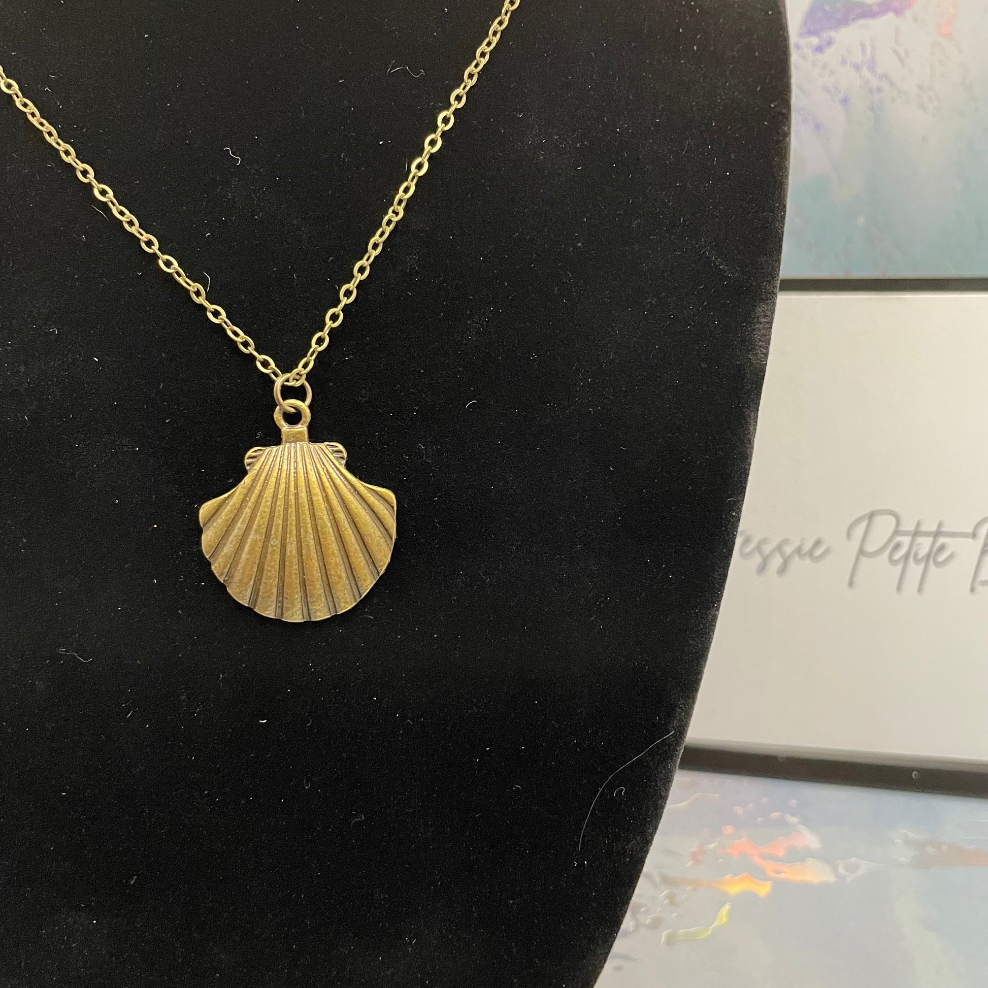 Le design élégant du coquillage et la finition bronze lui confèrent une allure sophistiquée, tandis que le fermoir mousqueton assure un maintien sûr et confortable. Cet ensemble collier et boucles d'oreilles est idéal pour ajouter une touche d'élégance à votre tenue.