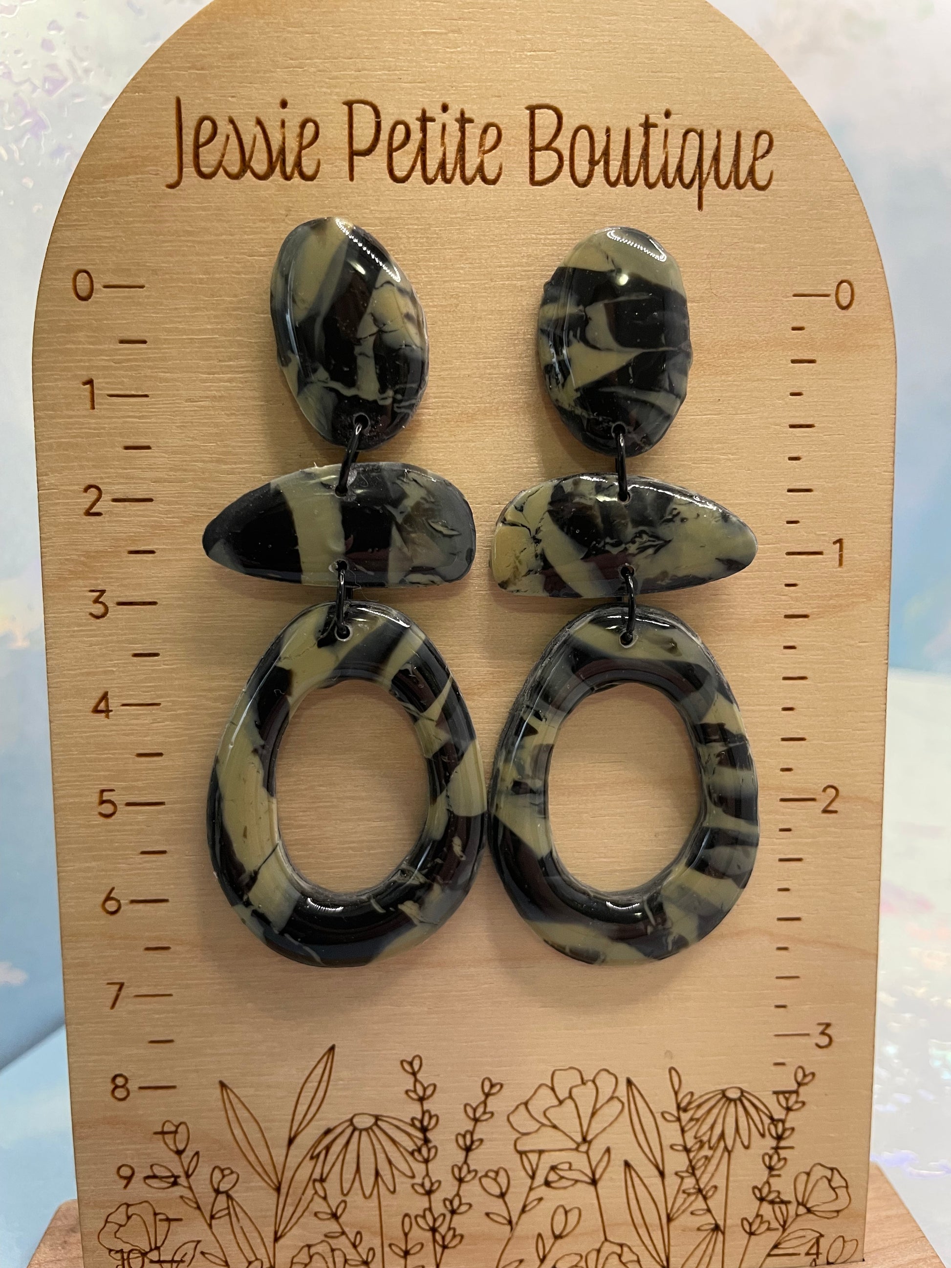 Boucles d’oreilles Angel(Argile):marbrée noir et crème-Sans Nickel