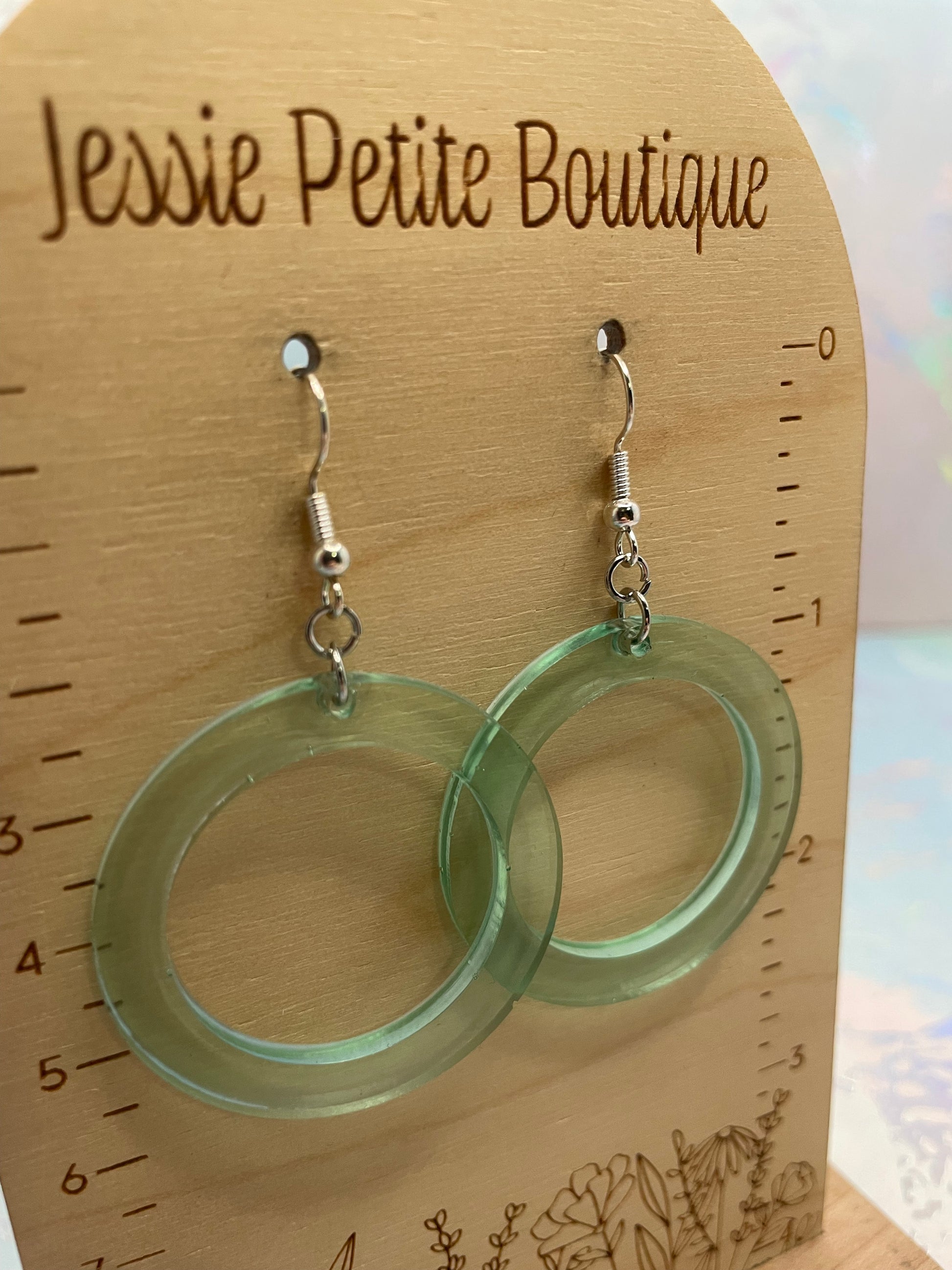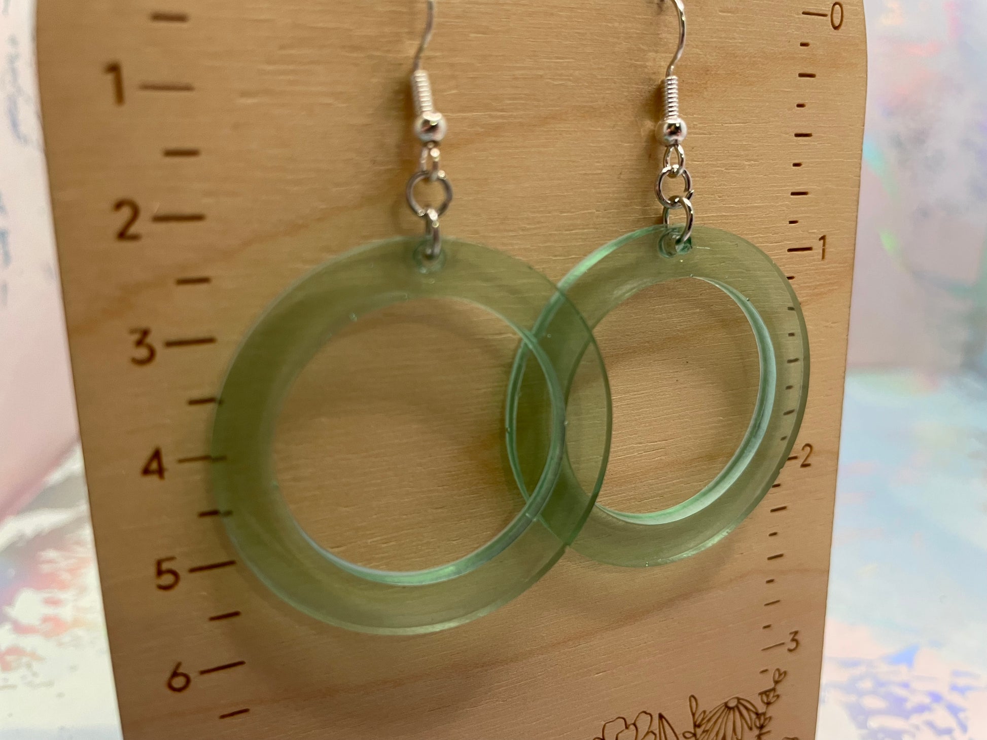 Ces boucles d'oreilles pendantes arborent une magnifique teinte bleu/vert clair transparente, réalisée en résine et encre à l'alcool pour un rendu subtil et aérien. Leur design circulaire minimaliste et leur transparence en font un accessoire polyvalent qui apporte une touche de couleur douce à toutes vos tenues.