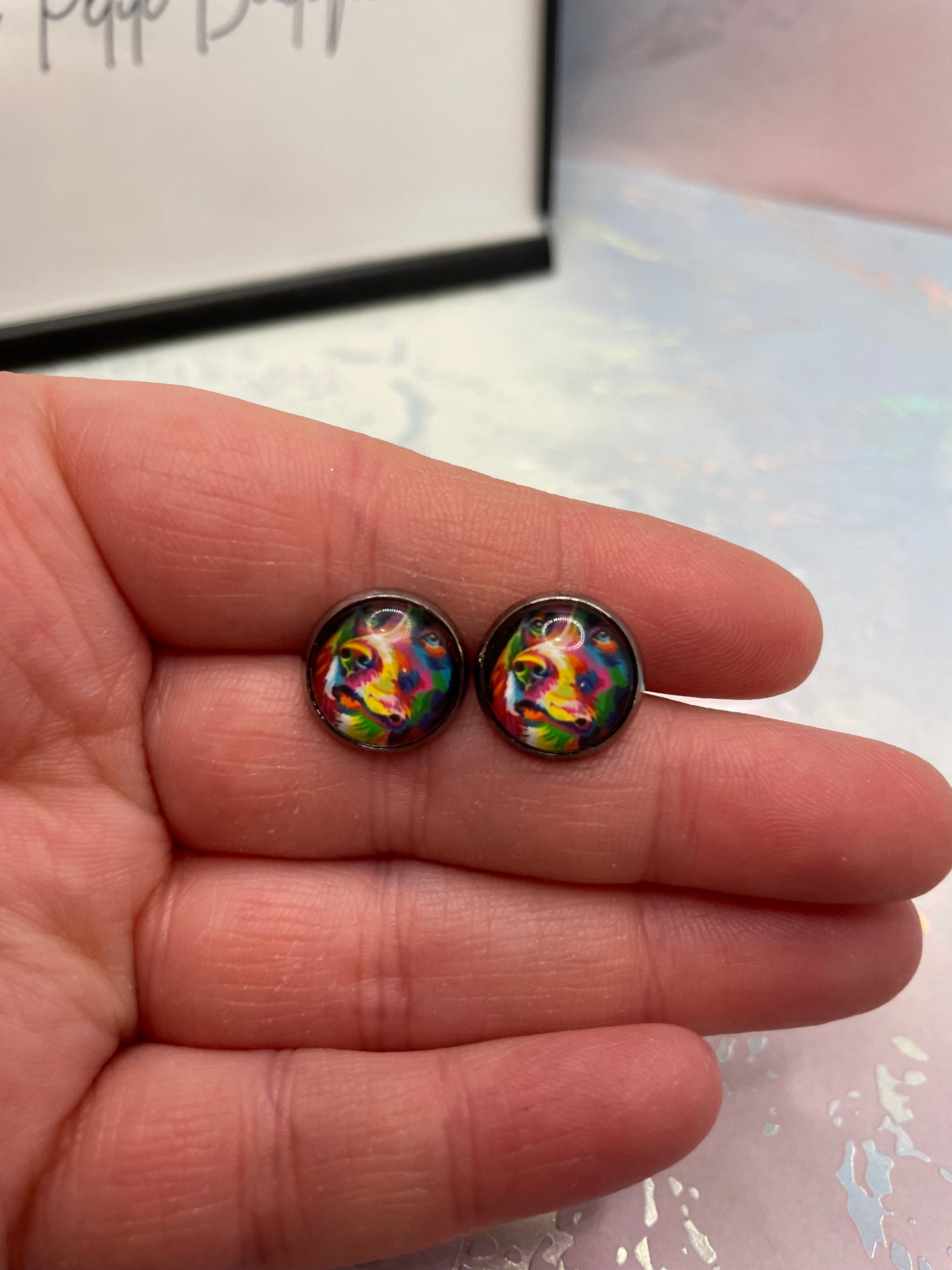 Affichez votre originalité avec ces boutons d’oreille chien coloré — un mélange audacieux d’art et de personnalité. Ces boutons d'oreilles présentent un portrait de chiens aux couleurs vives et expressives, protégé par un cabochon de verre lisse. Le design artistique apporte une touche moderne tout en restant facile à porter au quotidien.