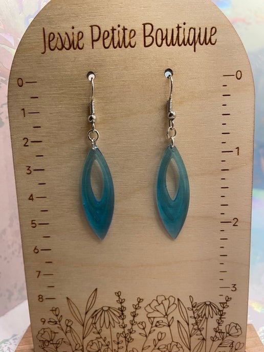Ces boucles d'oreilles délicate bleues, élégantes et intemporelles, présentent une forme ovale pointue, conçue pour apporter une touche subtile et élégante à tous vos looks. Fabriquées en résine avec de la poudre de mica, elles offrent un fini scintillant. Leur légèreté assure un port confortable, tandis que leur crochet d'oreille assure durabilité et facilité d'utilisation.