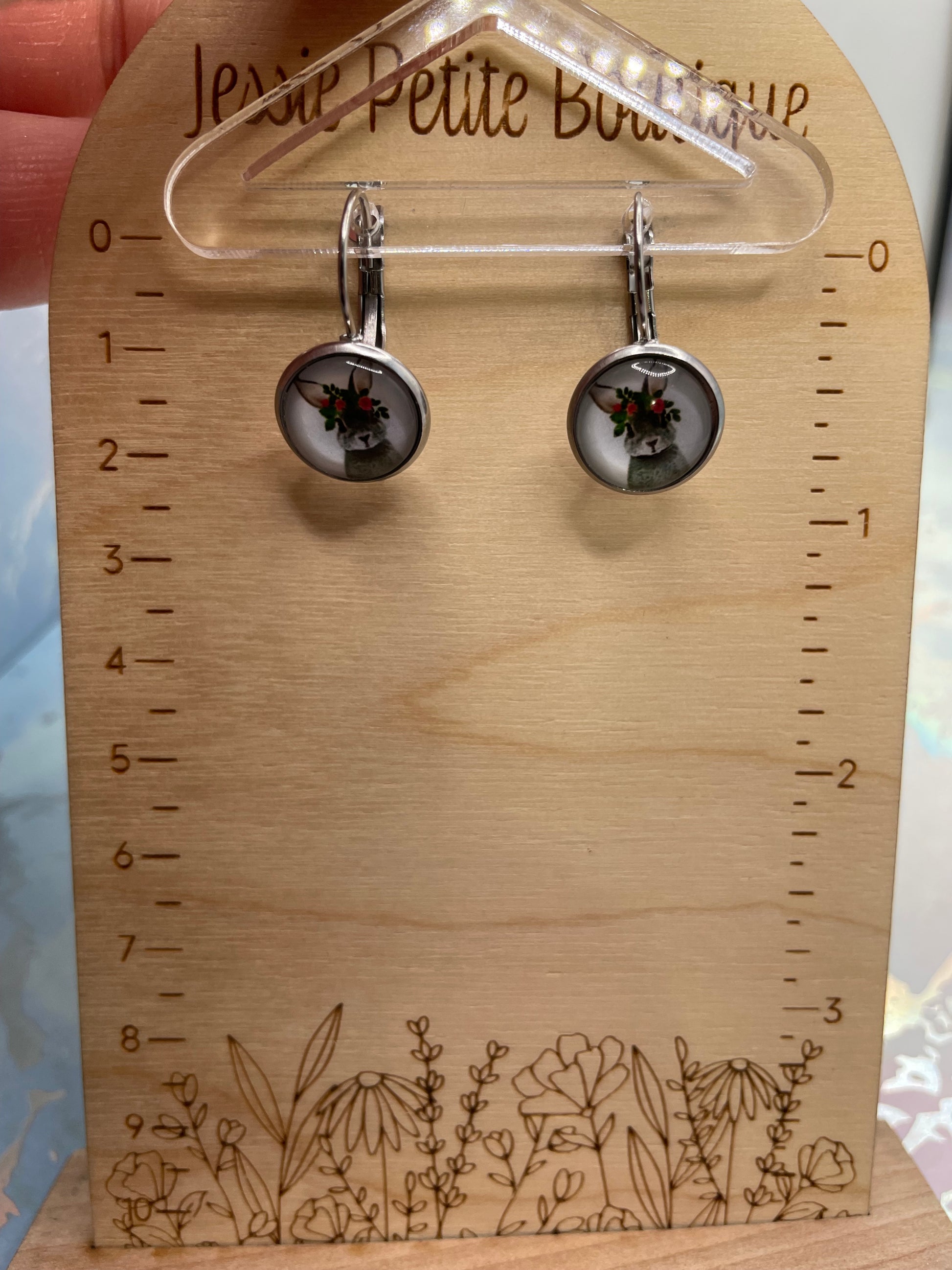 Boutons d’oreilles Lapin Fleuri–Acier inoxydable+Sans nickel