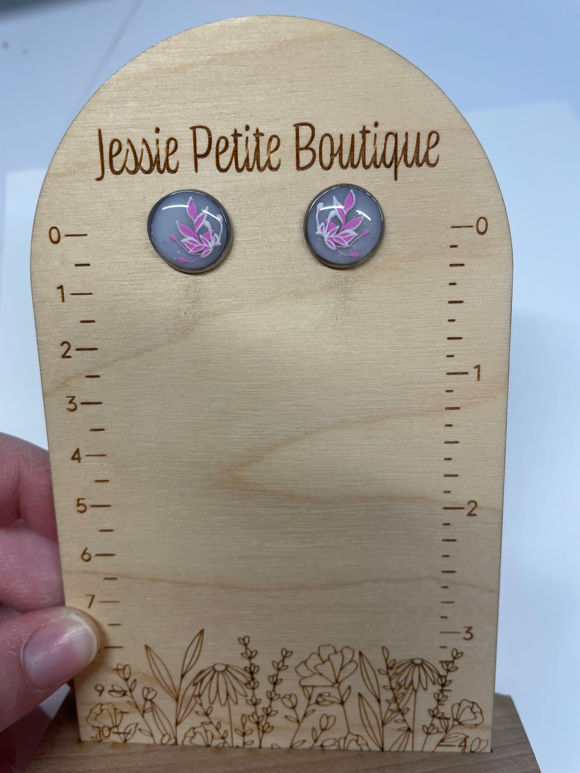 Boutons d'oreille floraux rose et gris- Acier Inoxydable