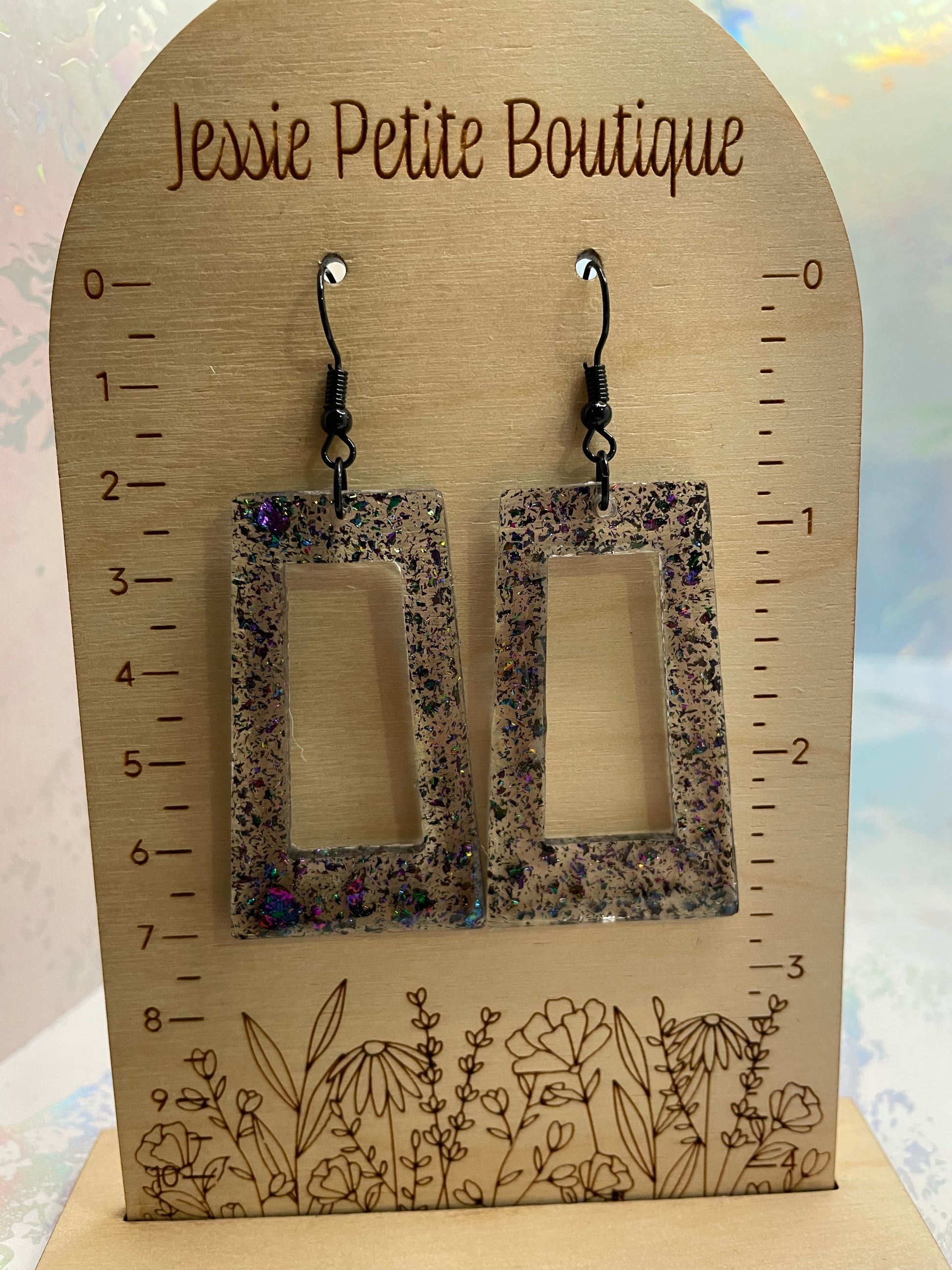 Ces boucles d'oreilles rectangulaires Funky Foil sont parfaites pour celles qui aiment les accessoires audacieux et ludiques. Leurs couleurs vives et leur design unique les rendent idéales pour ajouter une touche de fantaisie à n'importe quelle tenue, que ce soit pour une soirée ou pour égayer un look décontracté.