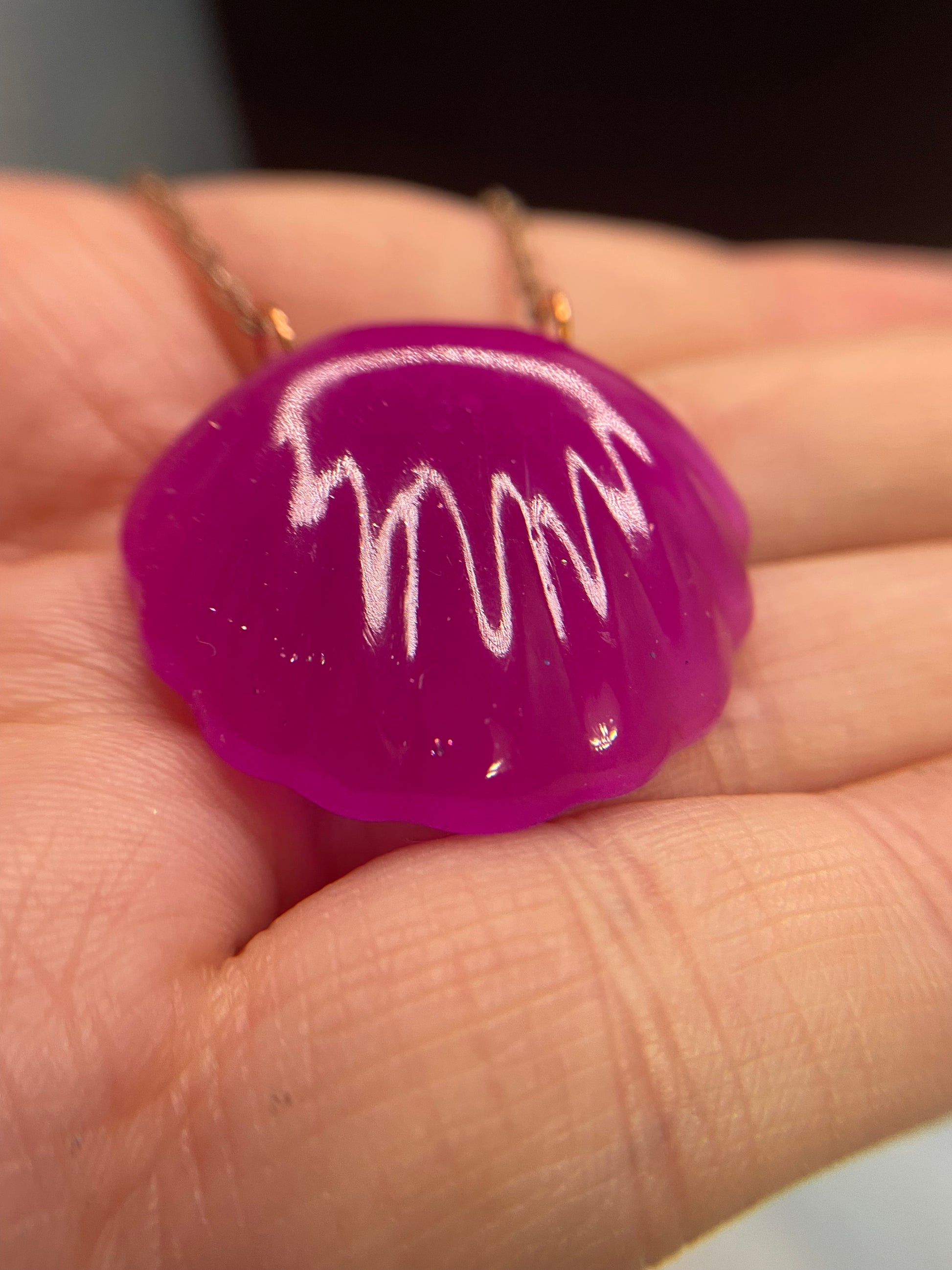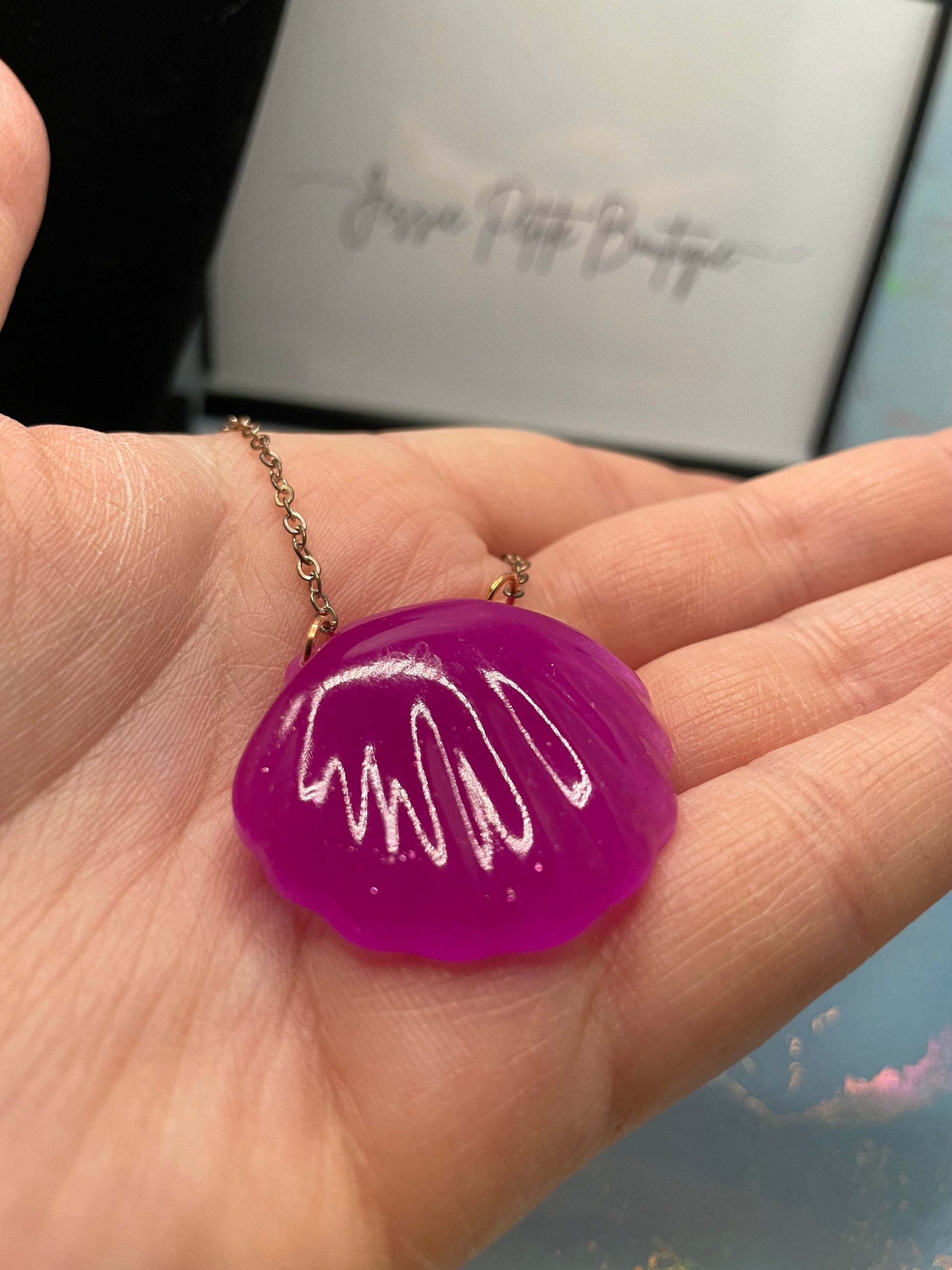 Imprégnez-vous de la beauté sereine de la mer avec ce collier pendentif coquillage mauve phosphorescent. Ce pendentif audacieux en forme de coquillage, mesurant 3,5 cm de large et 3,2 cm de haut, brillera doucement dans l'obscurité, ajoutant une touche de wow à votre tenue de soirée. Fabriqué en résine durable, ce pendentif capture l'essence de l'océan avec sa délicate teinte mauve.