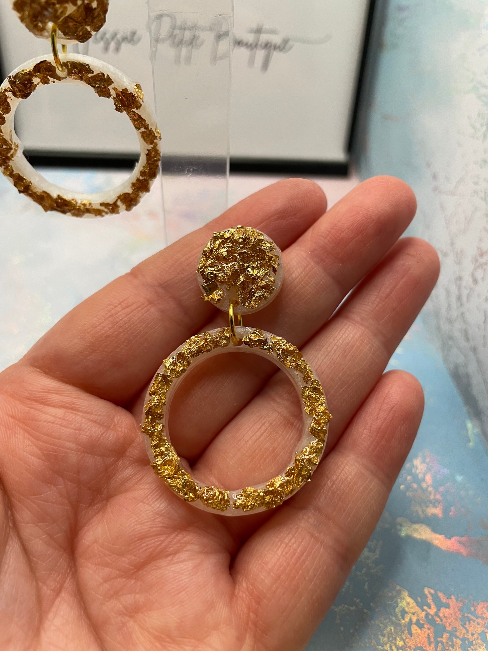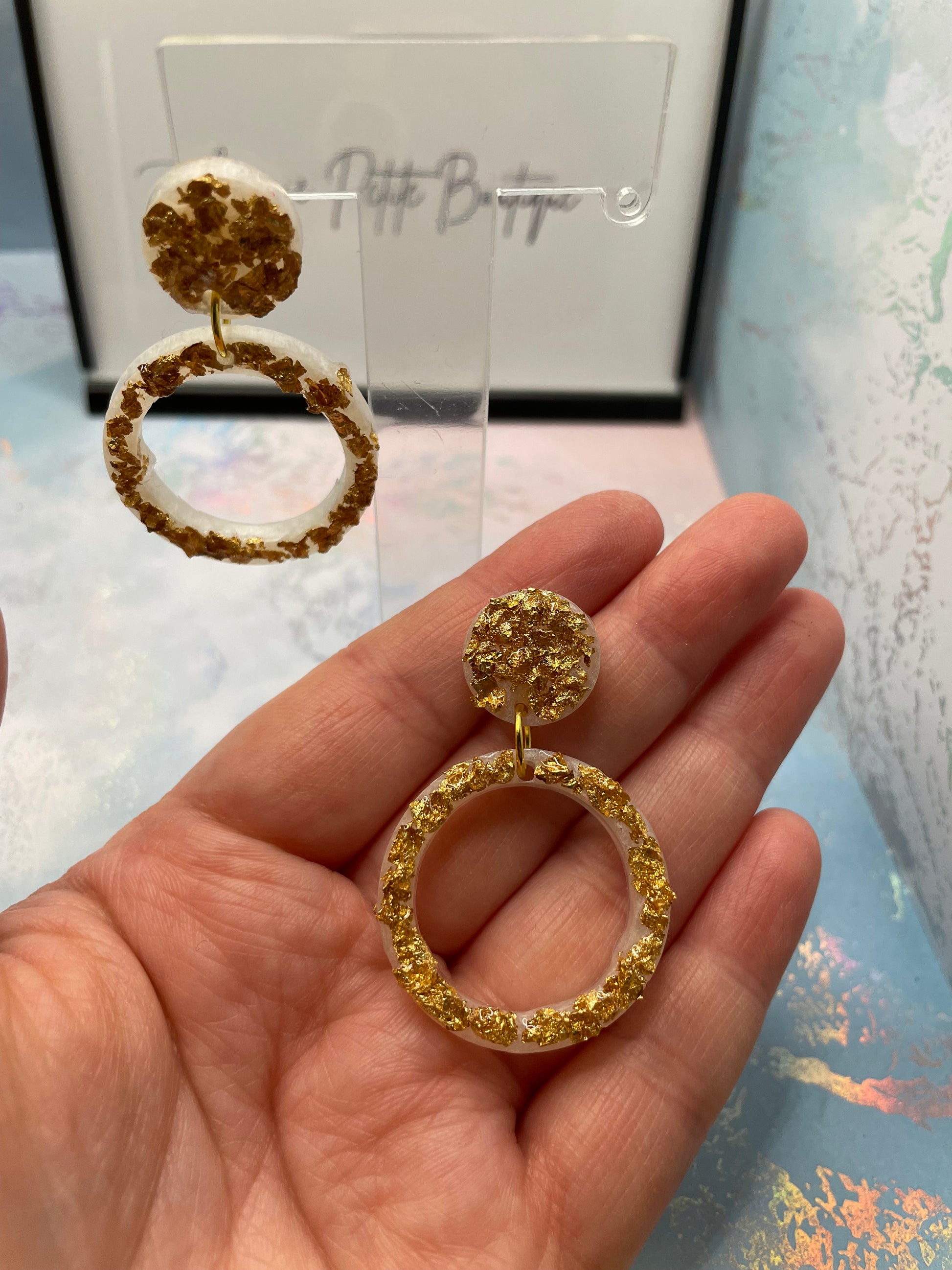Boucles d'oreilles cercle blanc avec feuille d'or - Sans nickel