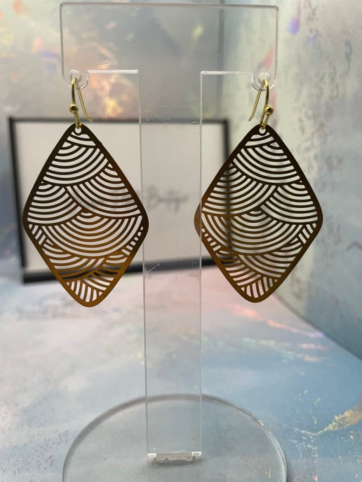 Ajoutez une touche d'élégance géométrique à votre look avec ces superbes boucles d'oreilles losange en métal doré. Dotées d'une élégante forme losange et d'un crochet, ces boucles d'oreilles sont fabriquées en acier inoxydable pour une durabilité et un confort hypoallergéniques.