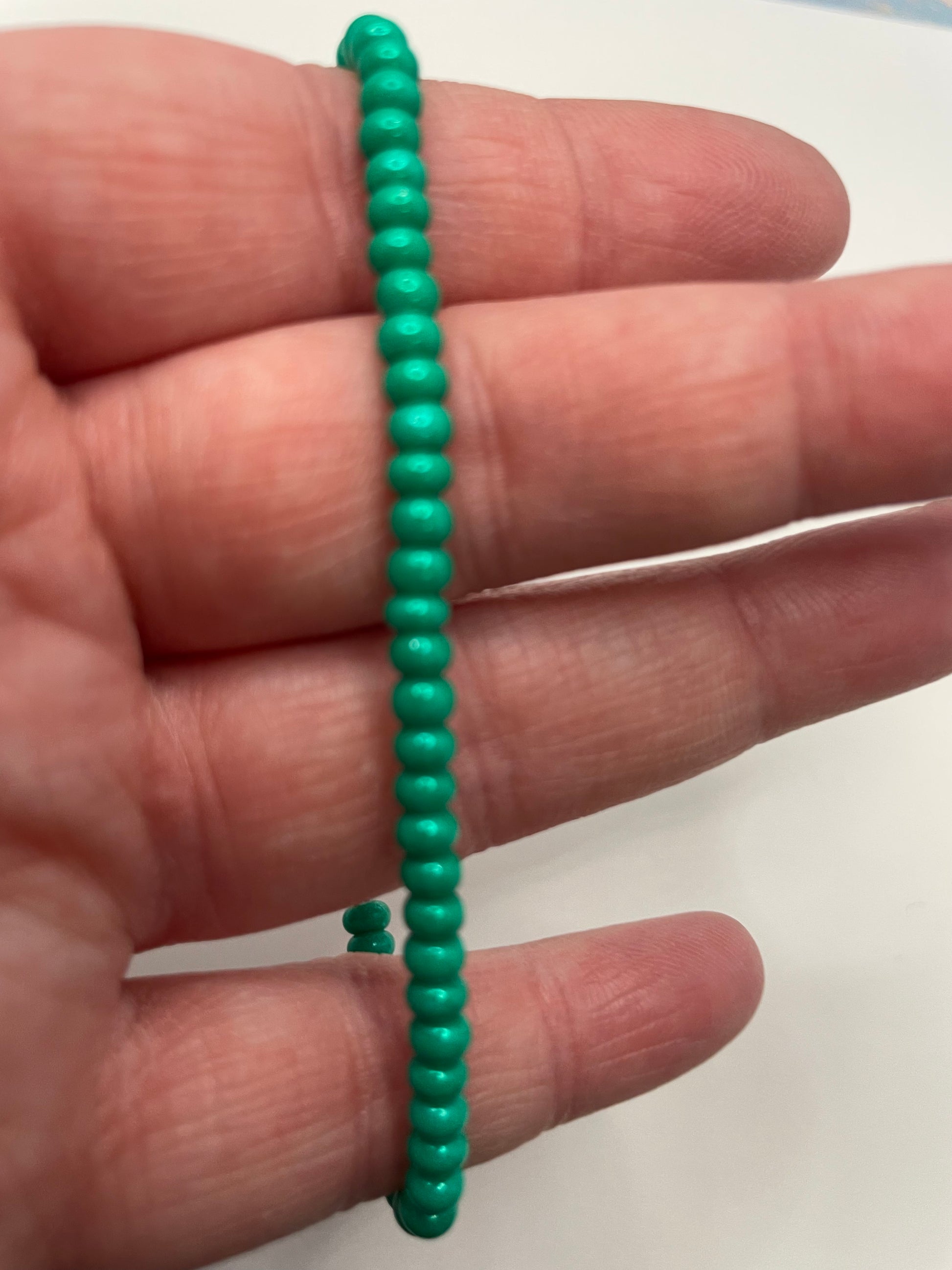Ce bracelet délicat est composé de perles de rocaille tchèques vertes de 3 mm, offrant une allure à la fois simple, fraîche et intemporelle. Léger et confortable, il est parfait pour un port quotidien ou pour être superposé avec d’autres bracelets pour un look plus personnalisé.
