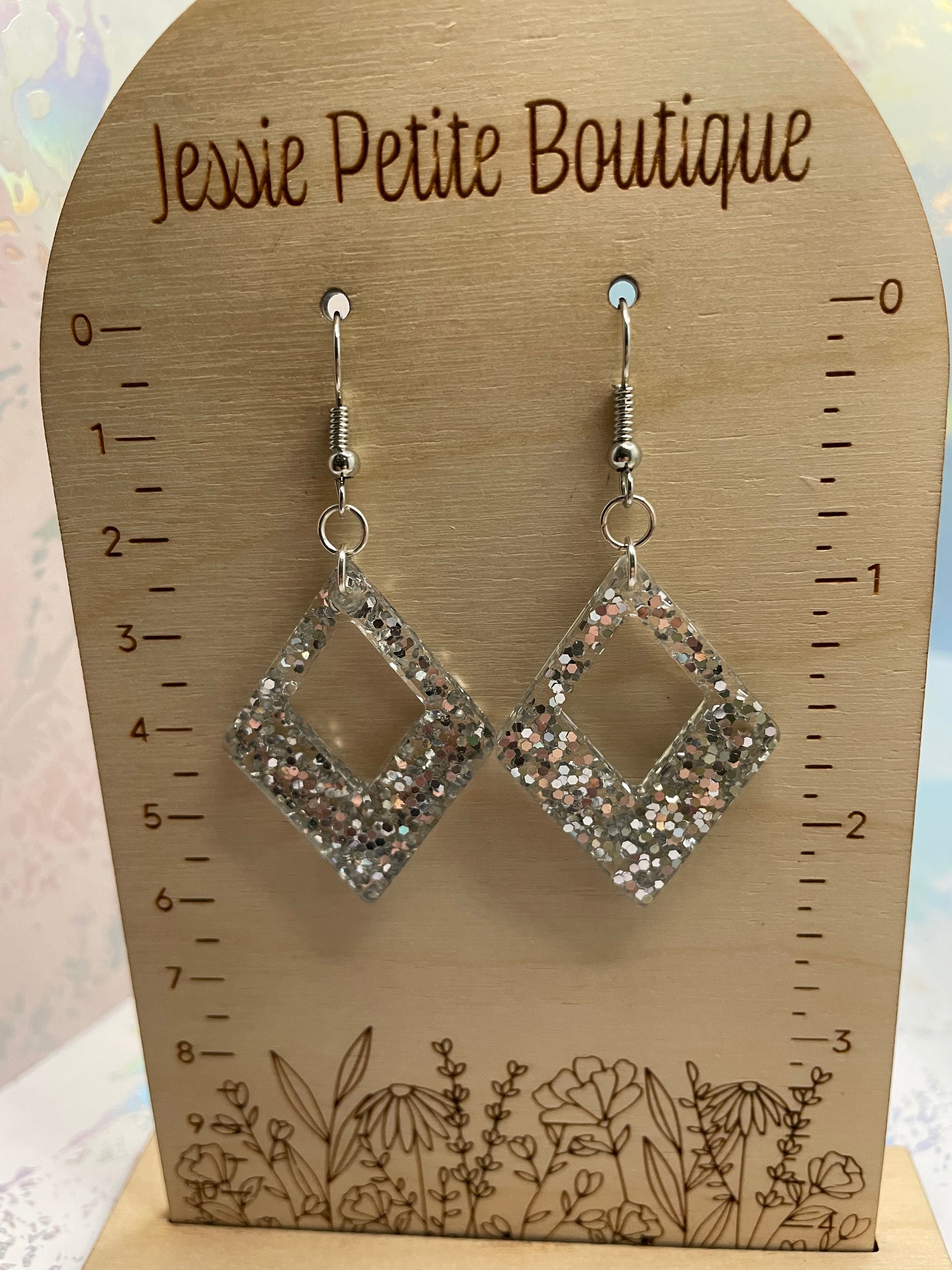 Ajoutez une touche de glamour à votre look avec ces boucles d'oreilles en diamant gris scintillant . La résine scintillante crée un magnifique effet scintillant dans une élégante forme de losange. Parfaites pour ajouter une touche de sophistication à n'importe quelle tenue, ces boucles d'oreilles sont à la fois polyvalentes et élégantes. Leur légèreté et leur fermoir sécurisé les rendent confortables à porter toute la journée.