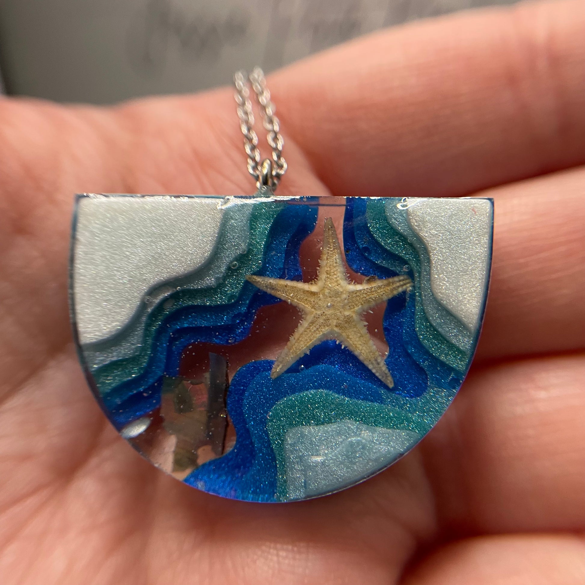 - Matériau : Fabriqué à partir de résine de haute qualité, de poudre de mica et d'éléments naturels d'étoiles de mer et de coquillages, le pendentif est durable et magnifiquement détaillé.