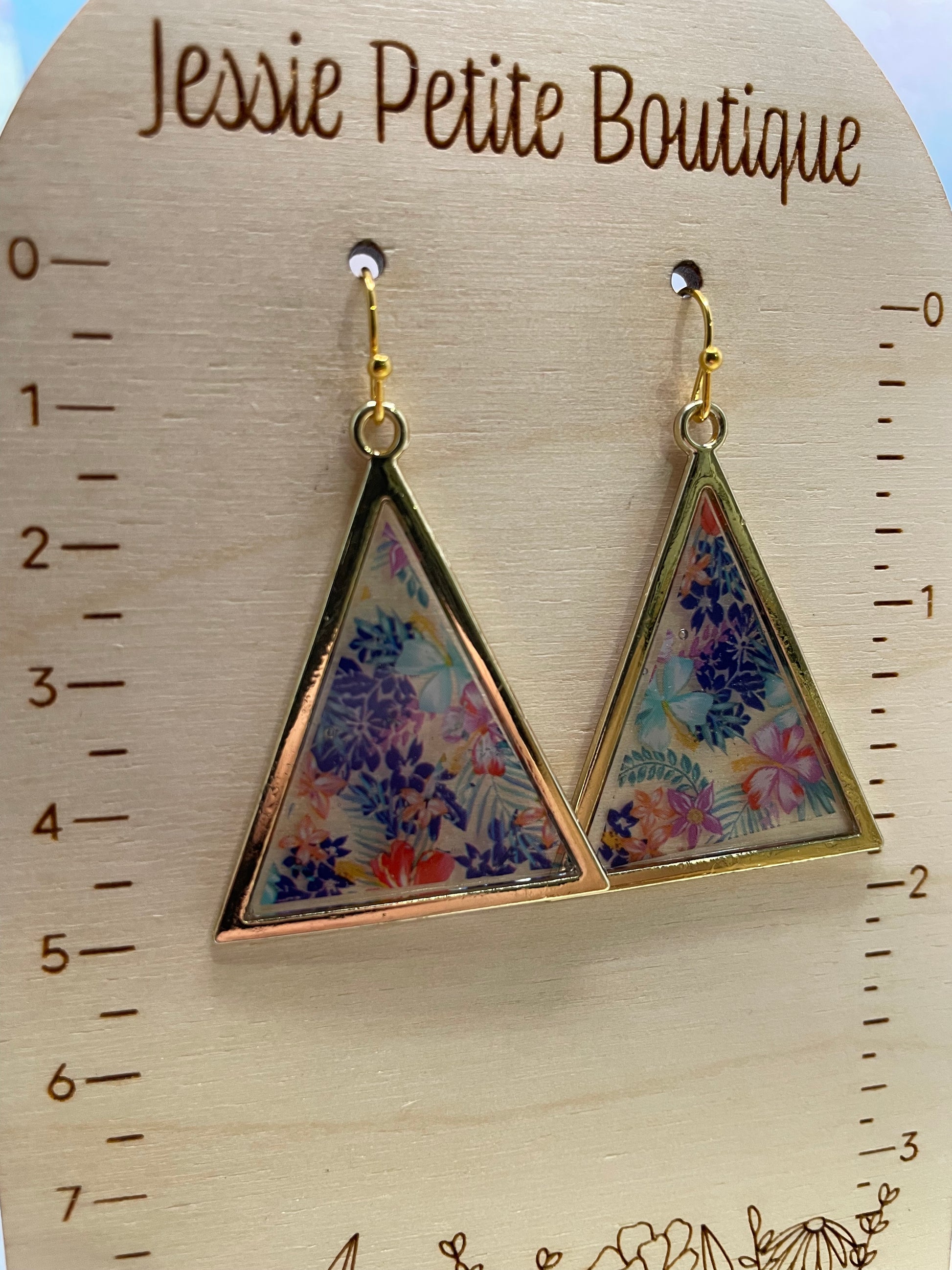 Adoptez une ambiance tropicale avec nos boucles d'oreilles triangulaires hawaïennes en or ! Dotées d'une forme triangulaire audacieuse et d'un design tropical vibrant, ces boucles d'oreilles sont rehaussées de touches dorées pour une touche d'élégance. Fabriquées dans un mélange de résine, de plastique et de métal, elles allient style et durabilité, avec un fermoir crochet confortable.