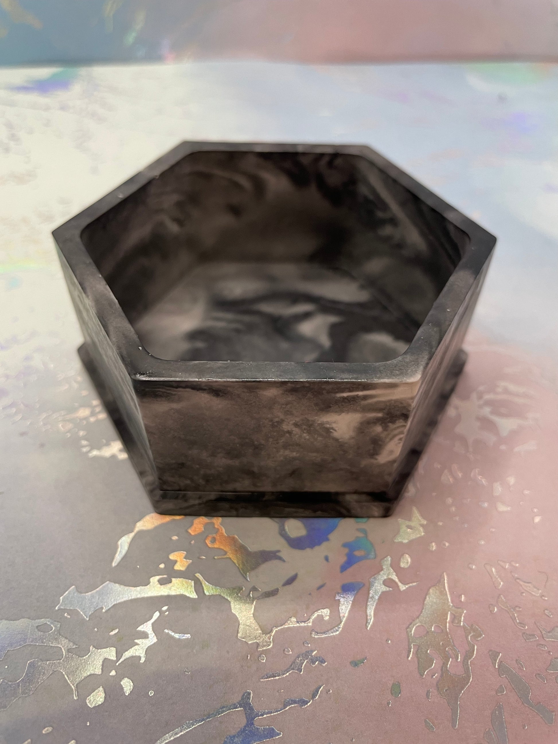 Contenant Hexagonal en Éco-Résine – Effet Fumé