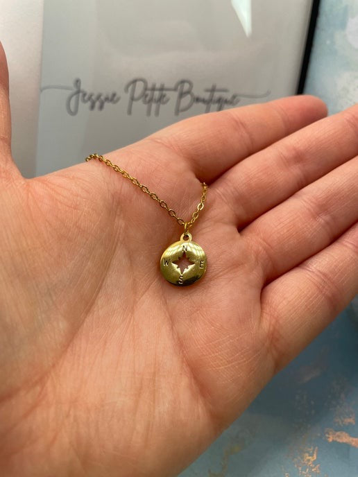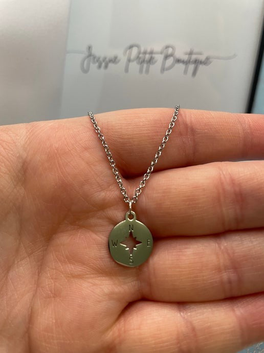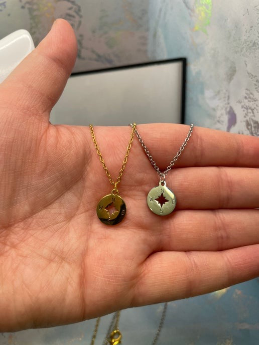 Exprimez votre côté aventurier avec cet élégant collier pendentif boussole creuse, disponible en argent et or. Monté sur une chaîne en acier inoxydable durable et sans nickel, ce bijou est idéal au quotidien et pour les peaux sensibles.