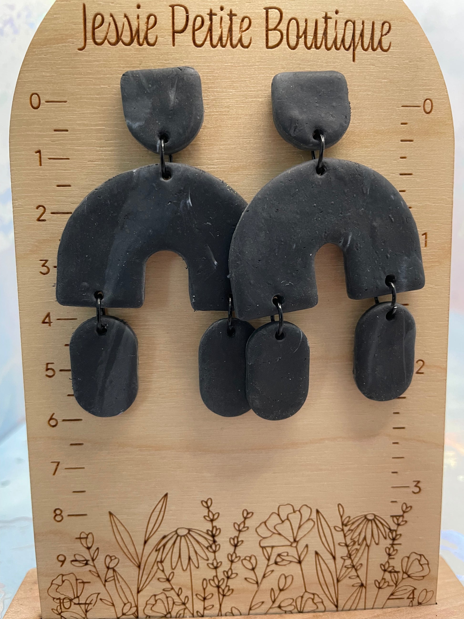 Boucles d’oreilles arche noires marbrés-Sans Nickel