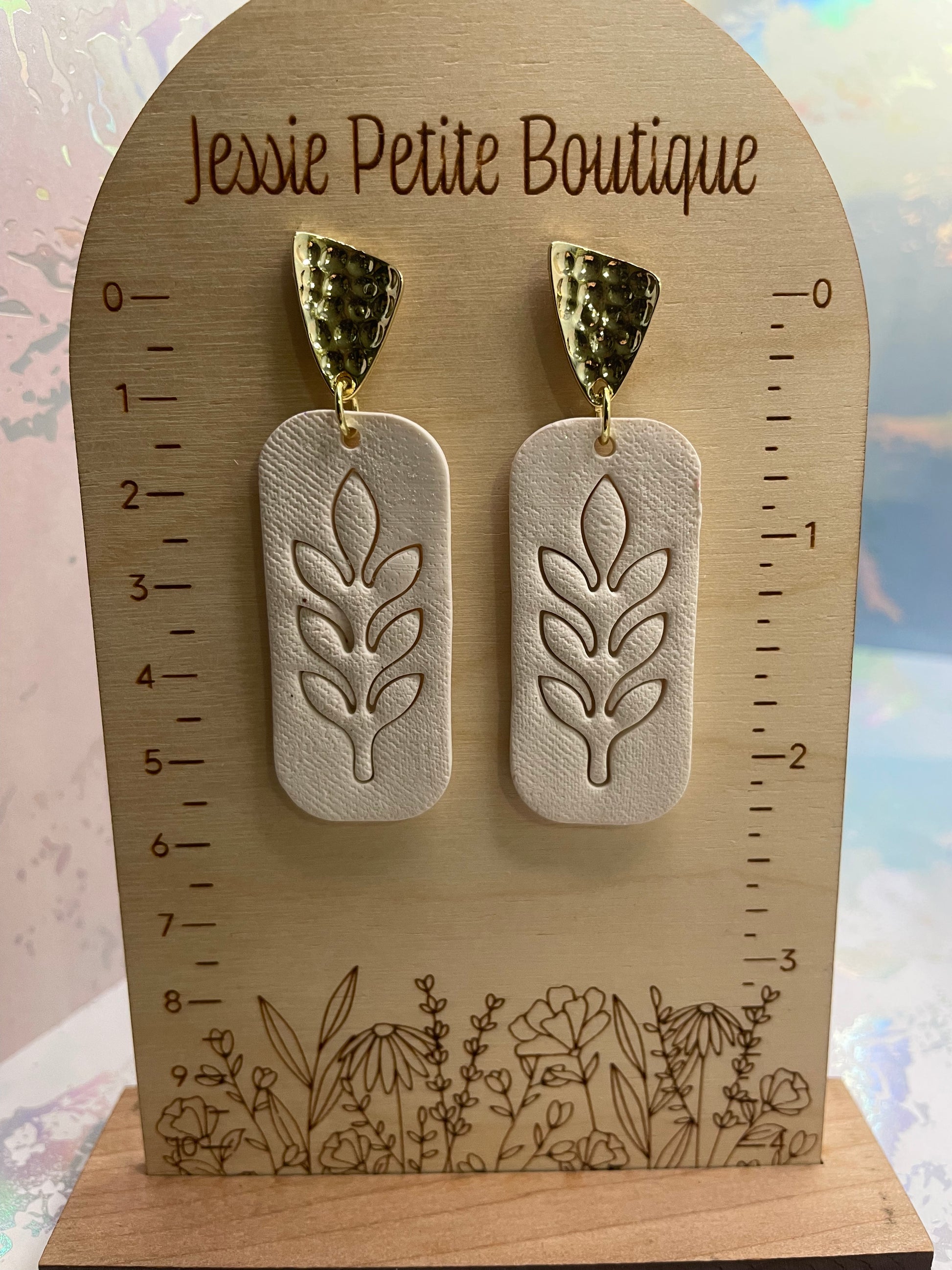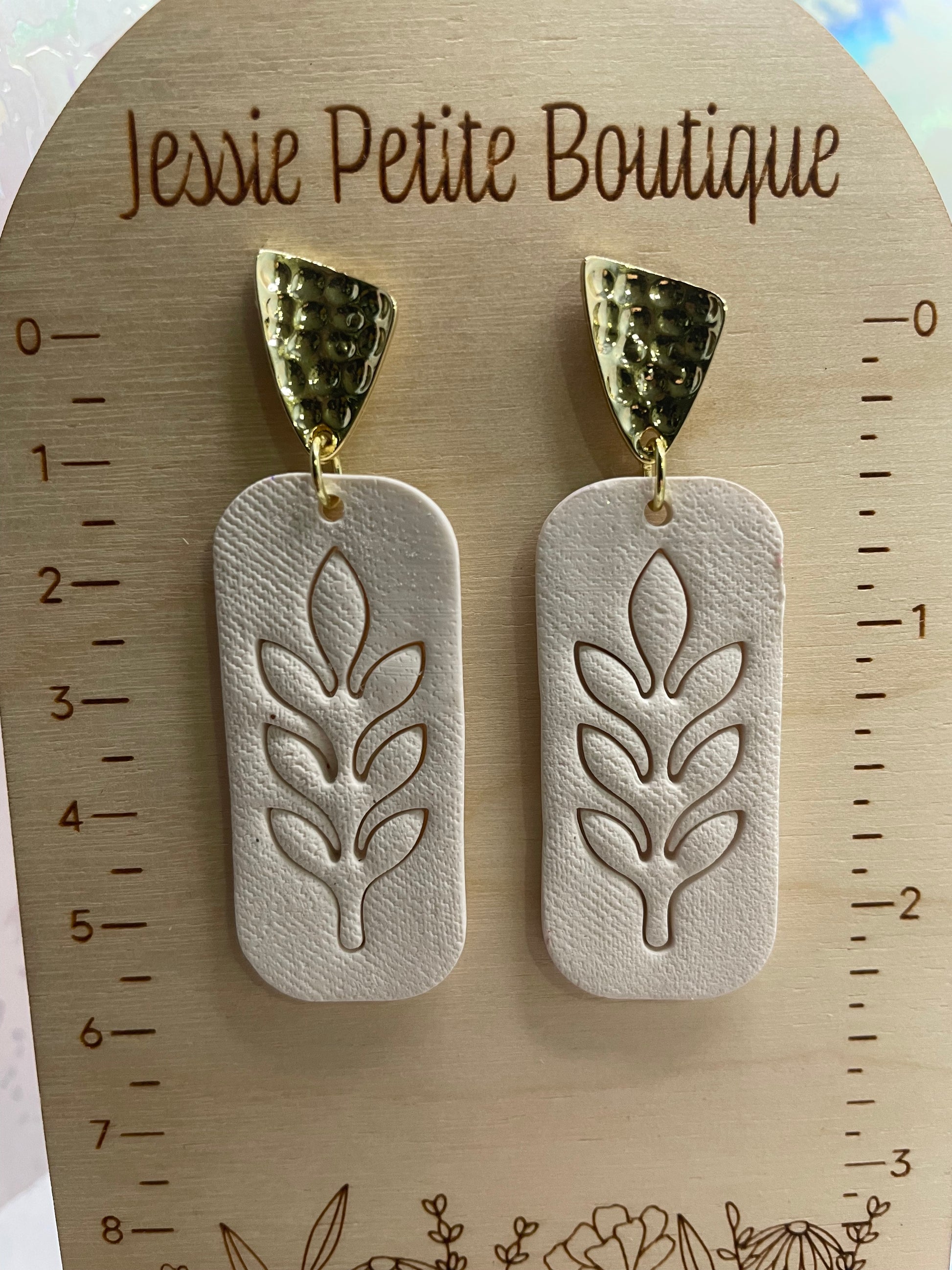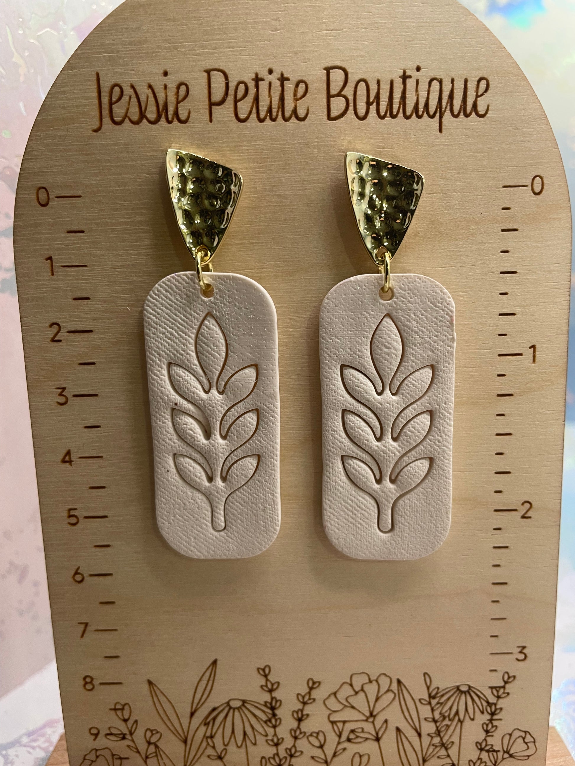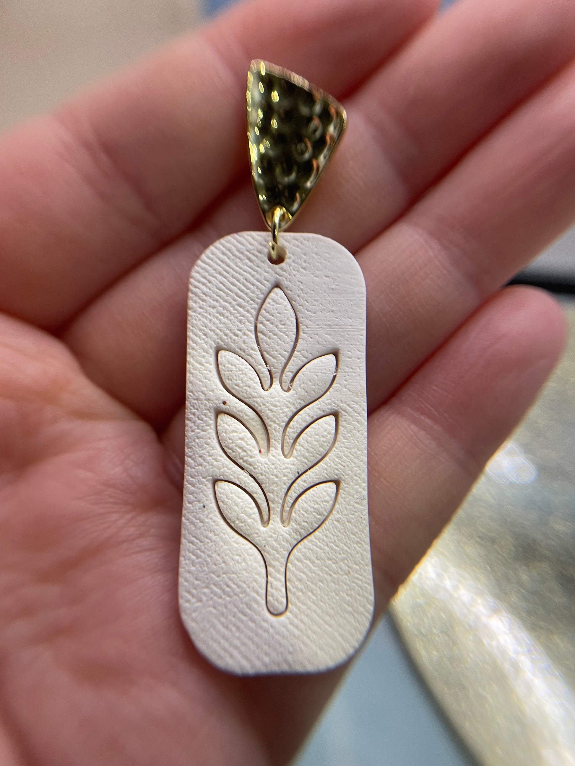 Découvrez Marilyn , un mélange saisissant d'élégance et de fantaisie. Ces boucles d'oreilles présentent un design rectangulaire unique, réalisé en argile polymère légère, et arborent une délicate empreinte florale au centre, qui leur confère une touche de charme.
