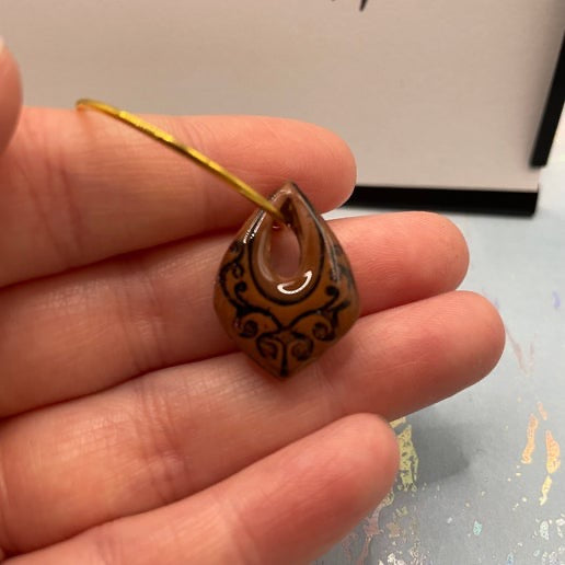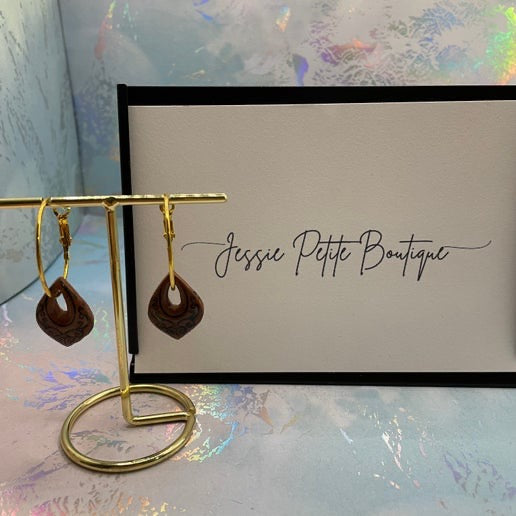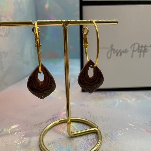 Ajoutez une touche de charme authentique à votre collection avec ces petites boucles d'oreilles marocaines marron en forme de larme/goutte. Dotées d'un design unique en forme de goutte aux motifs marocains, ces boucles d'oreilles sont fabriquées en argile polymère, rehaussées de peinture et recouvertes d'une résine UV brillante pour plus de durabilité et de brillance. Suspendues à une élégante anneau dorée, elles créent une superbe combinaison de tons naturels et d'élégance.