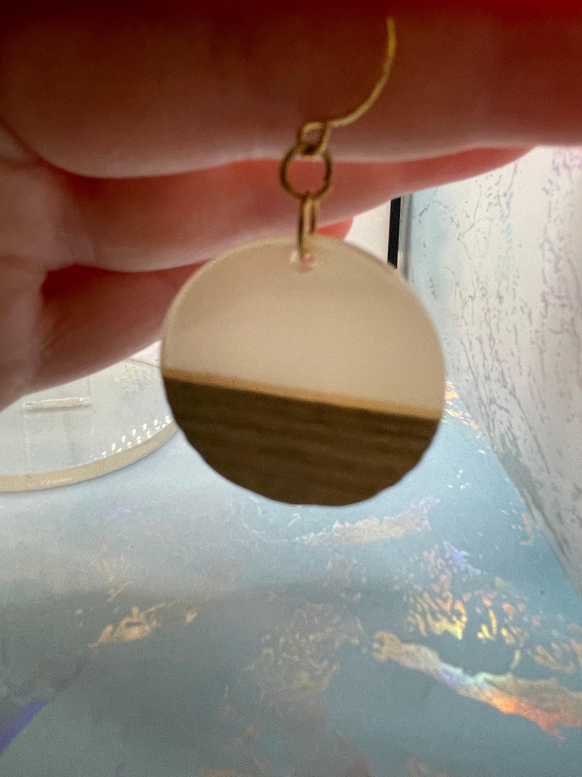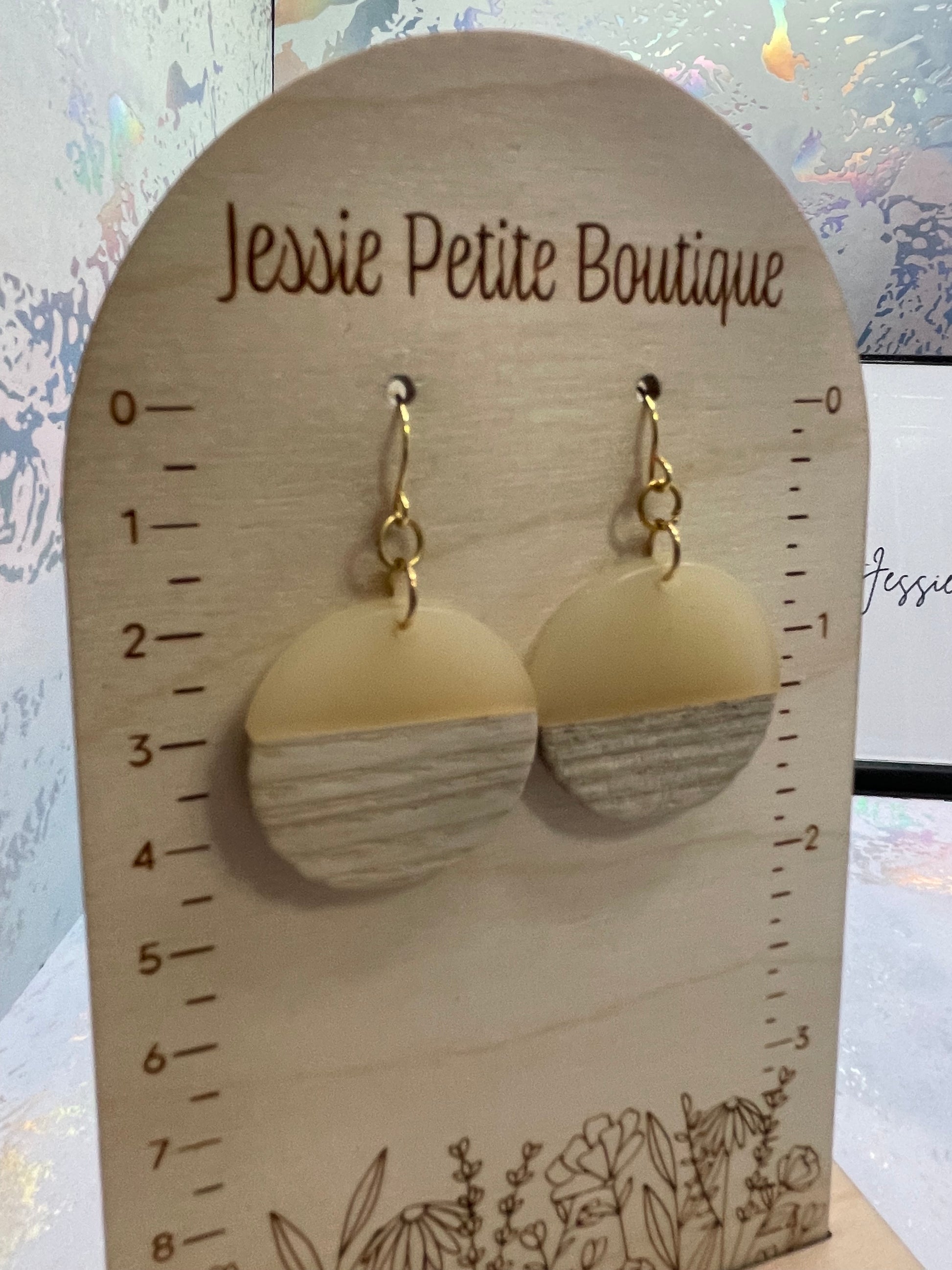 Ajoutez une touche d'élégance naturelle à votre look avec nos boucles d'oreilles Balance Naturelle. Ces boucles d'oreilles rondes mesurent 2.8 cm de long et se distinguent par leur design unique, mi-bois, mi-acétate acrylique beige. Elles allient la chaleur du bois à la modernité de l'acétate pour un style harmonieux et raffiné.