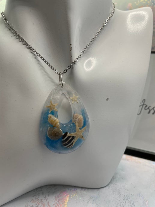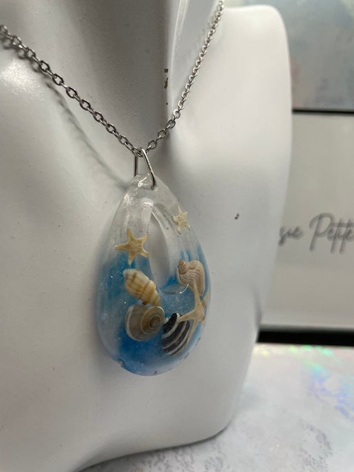 - Matériaux : résine, poudre de mica, coquillage, étoile de mer