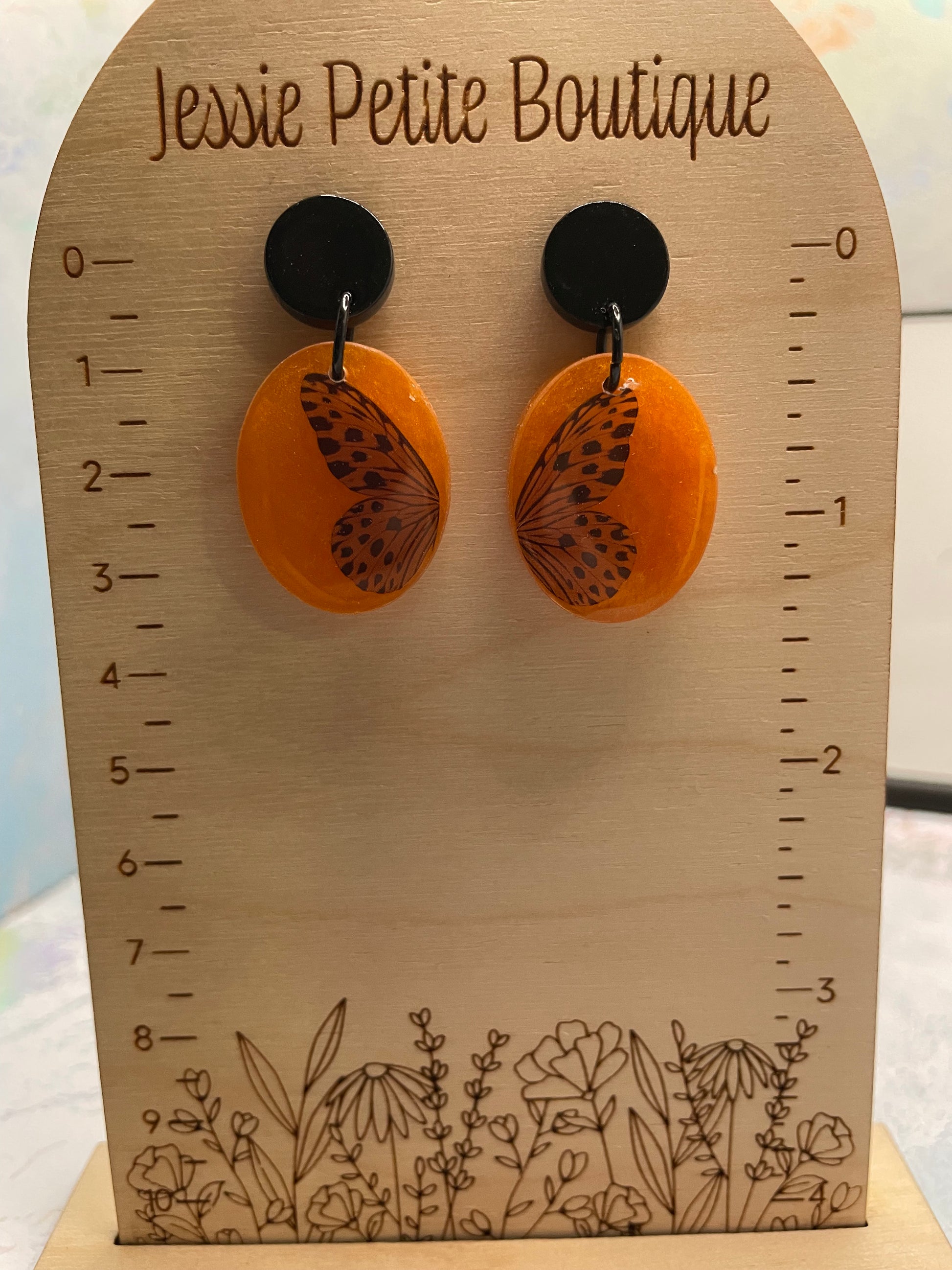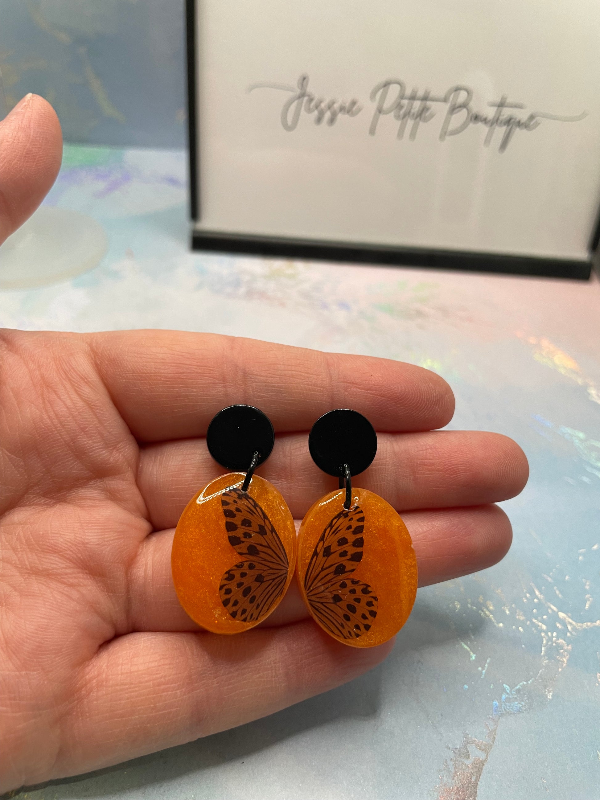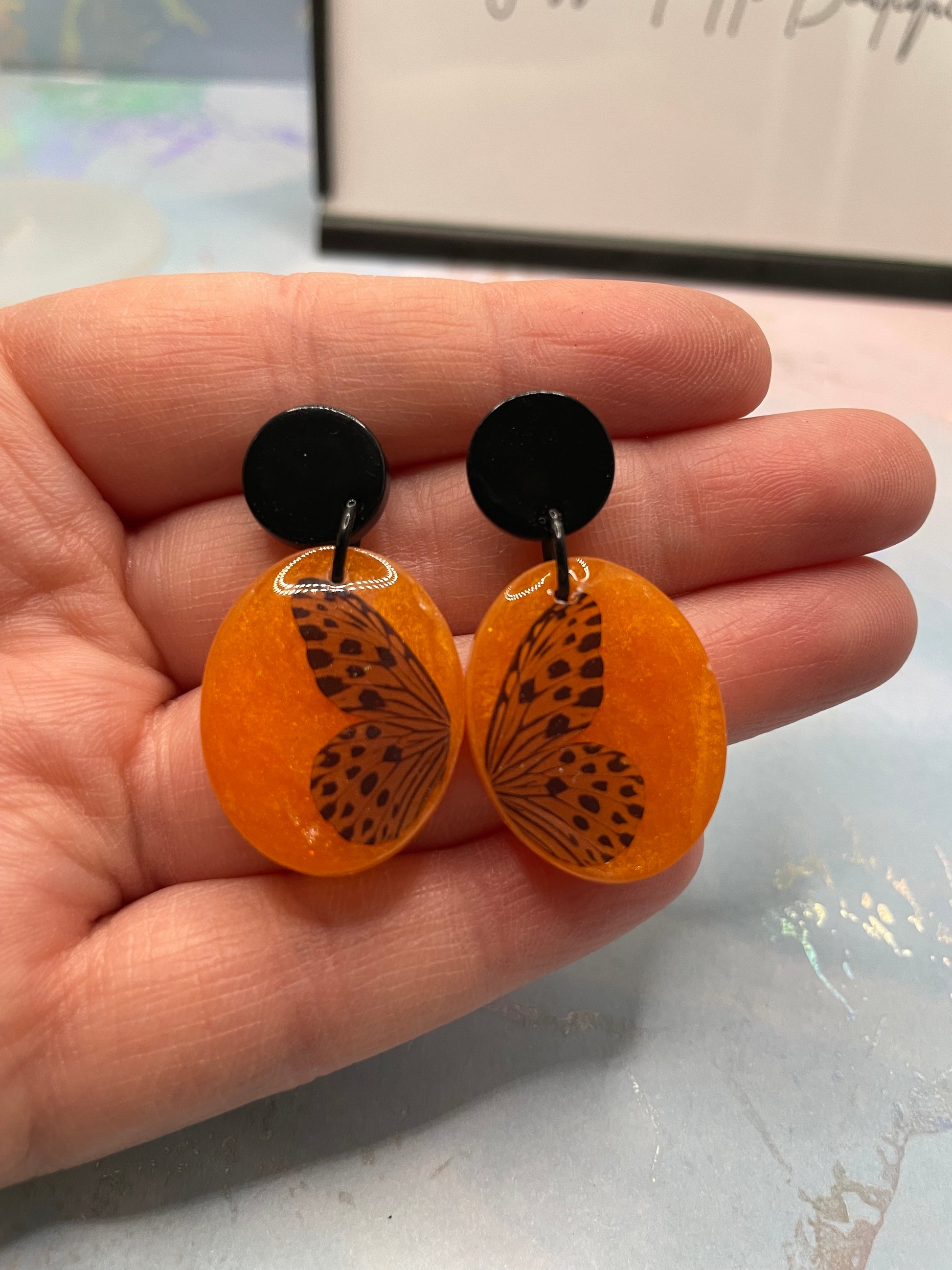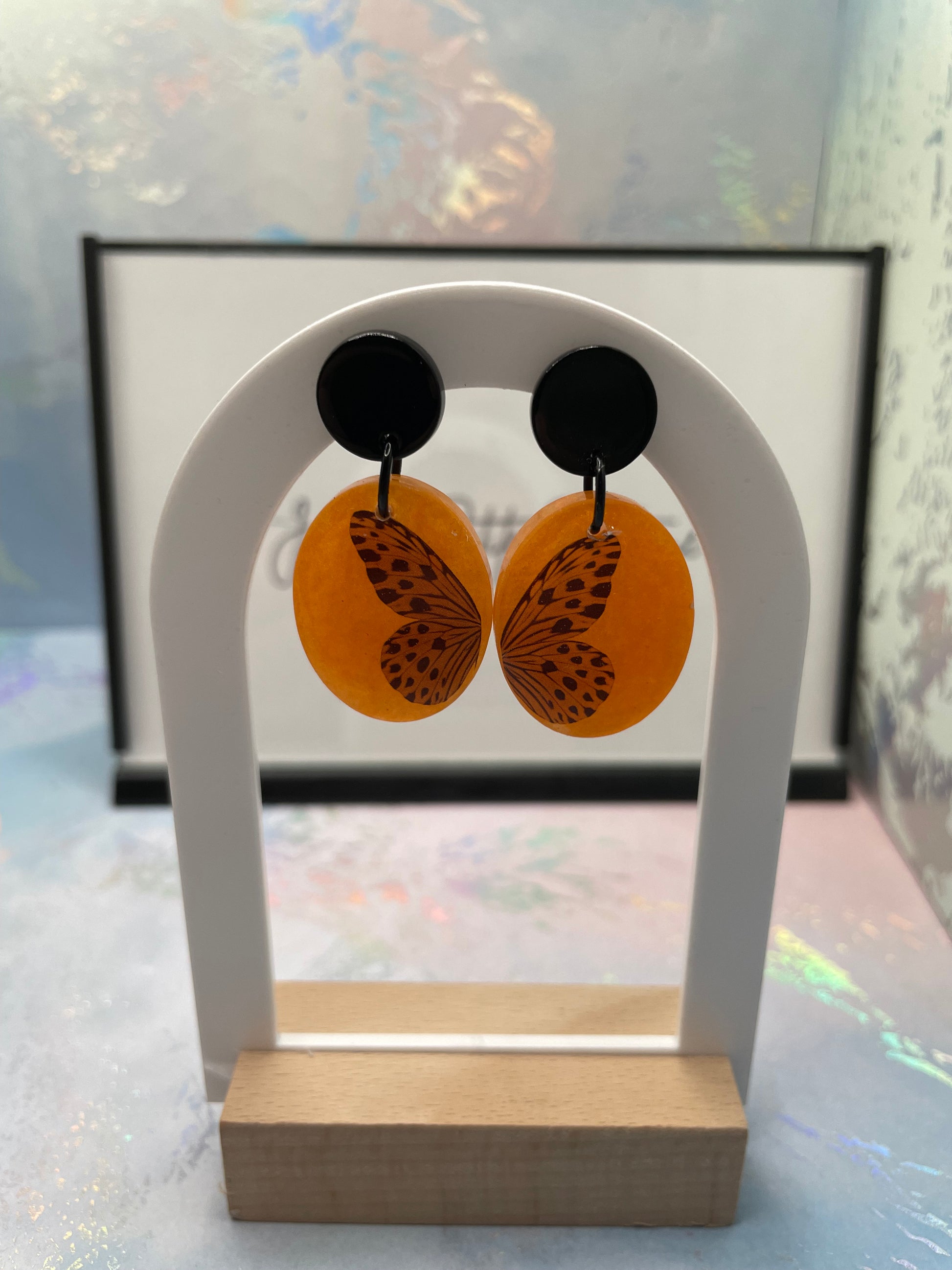 Boucles d'oreilles ovales oranges+papillons - SANS NICKEL