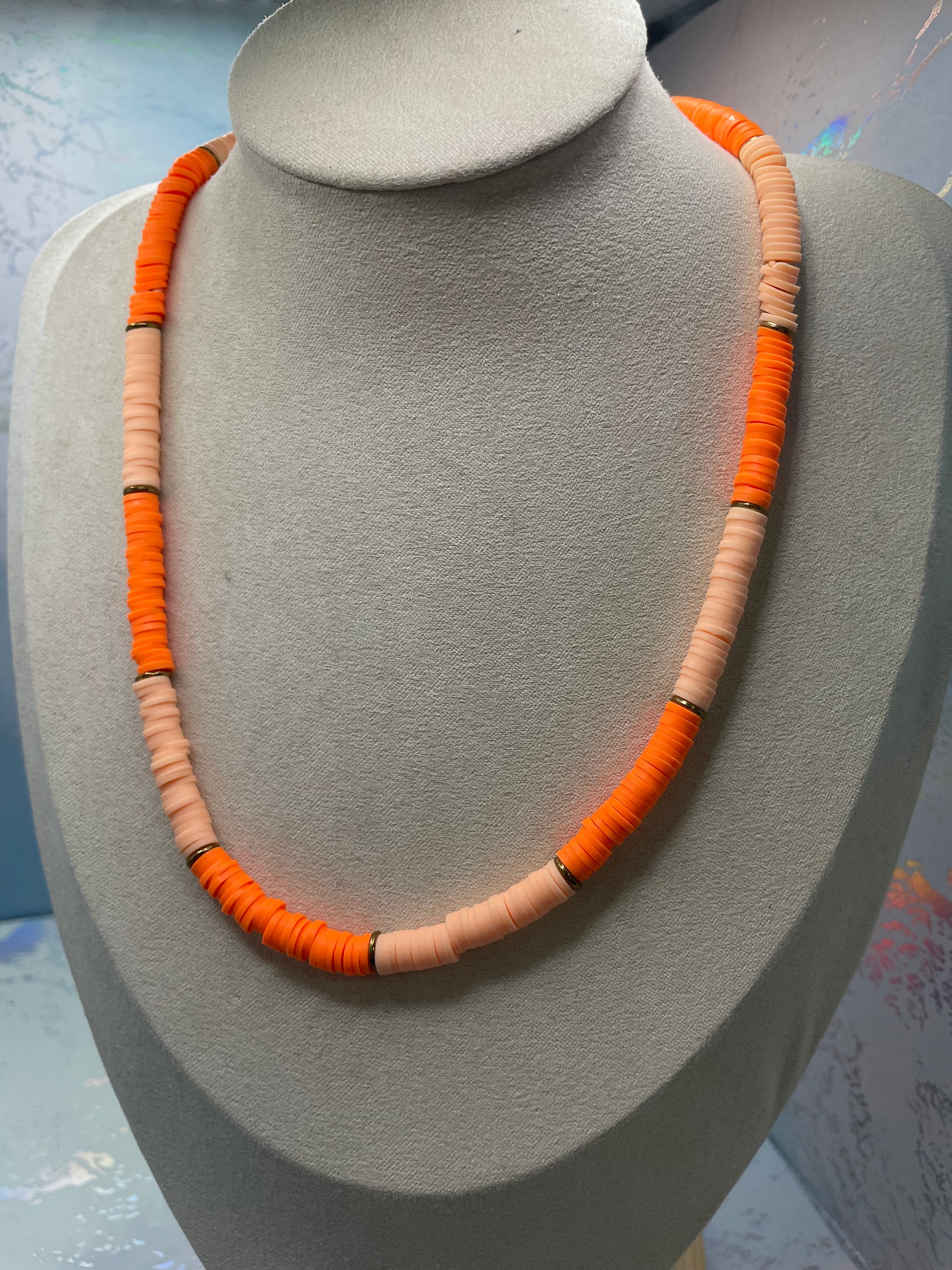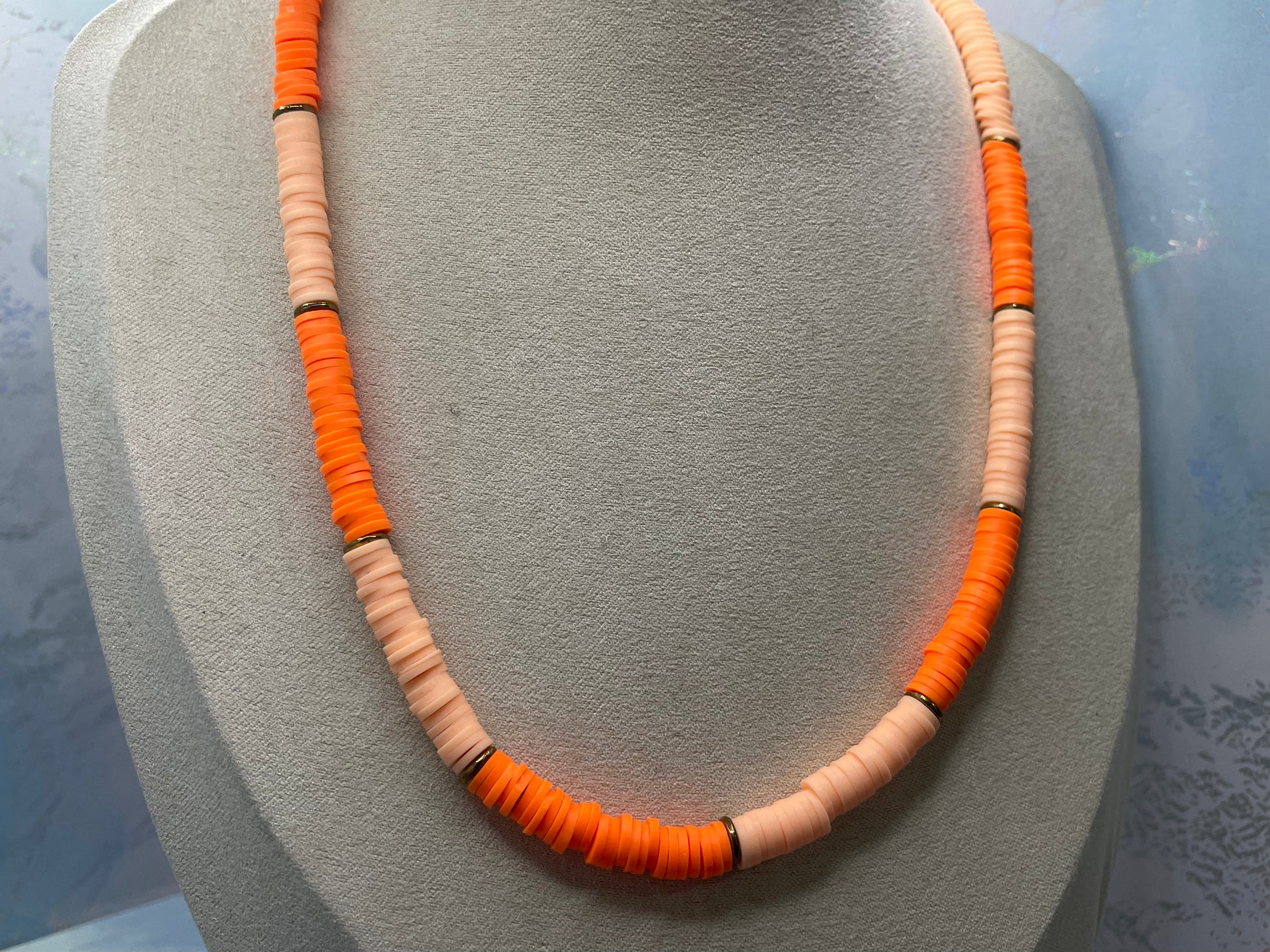 Collier Billes Argiles Oranges-Acier Inoxydable+Sans Nickel