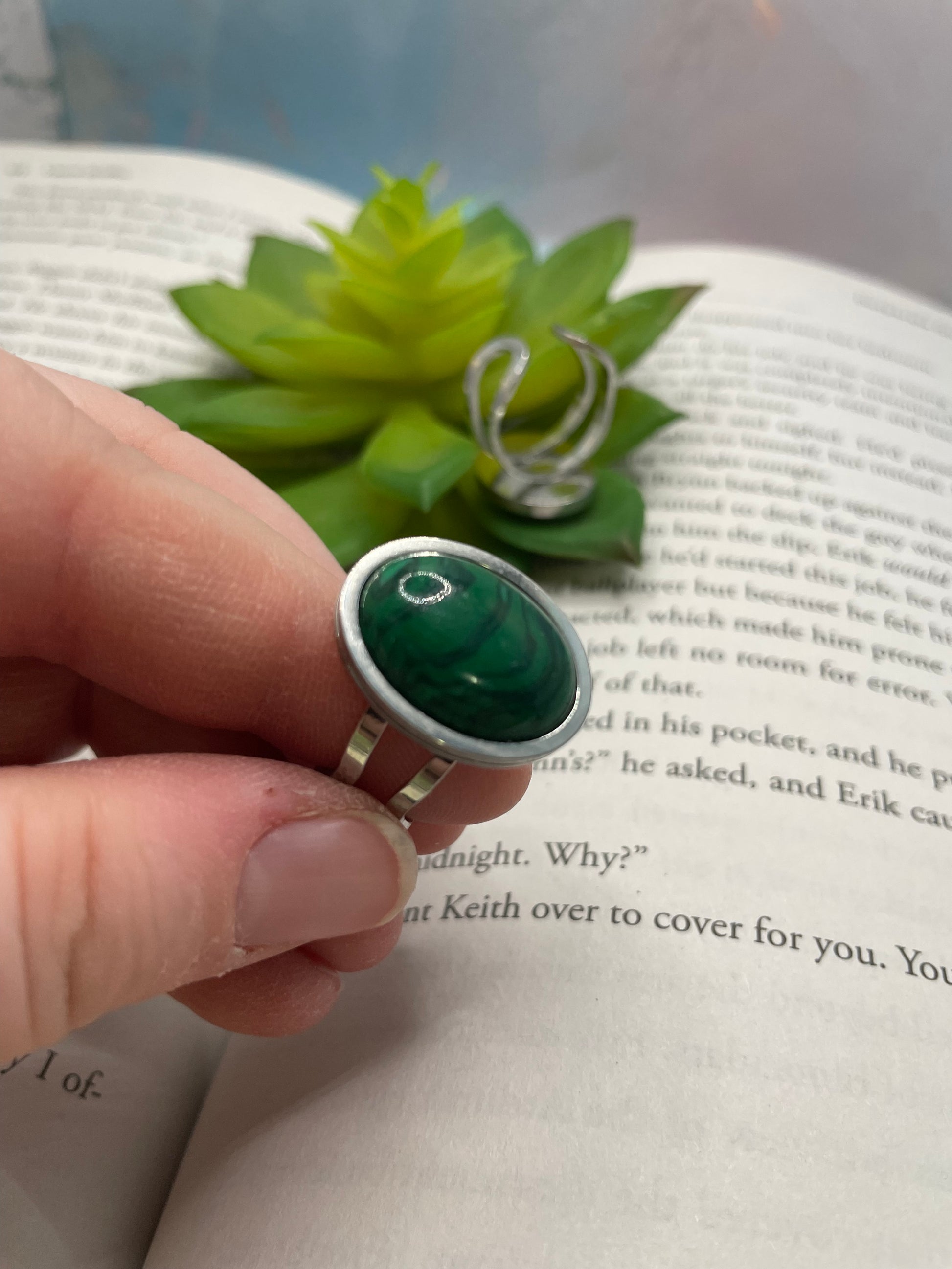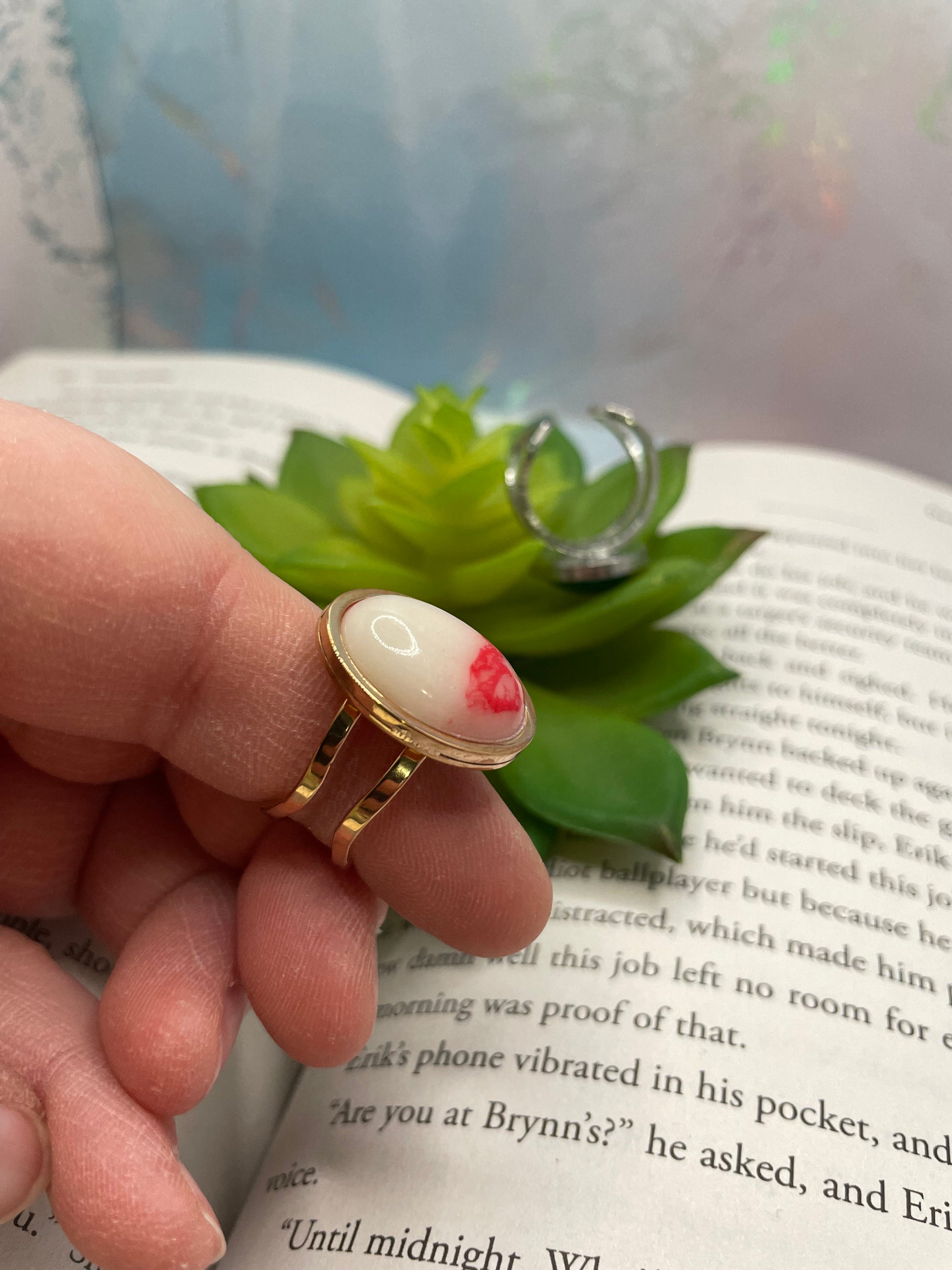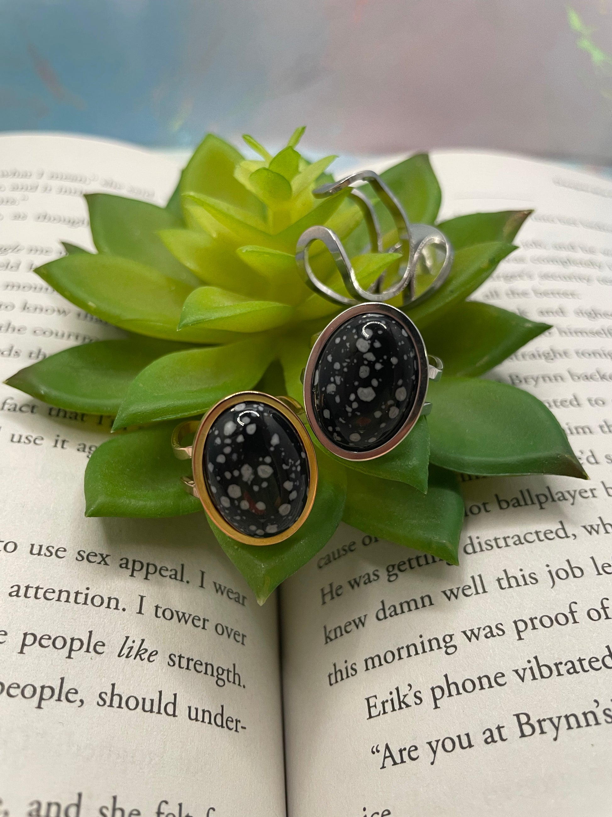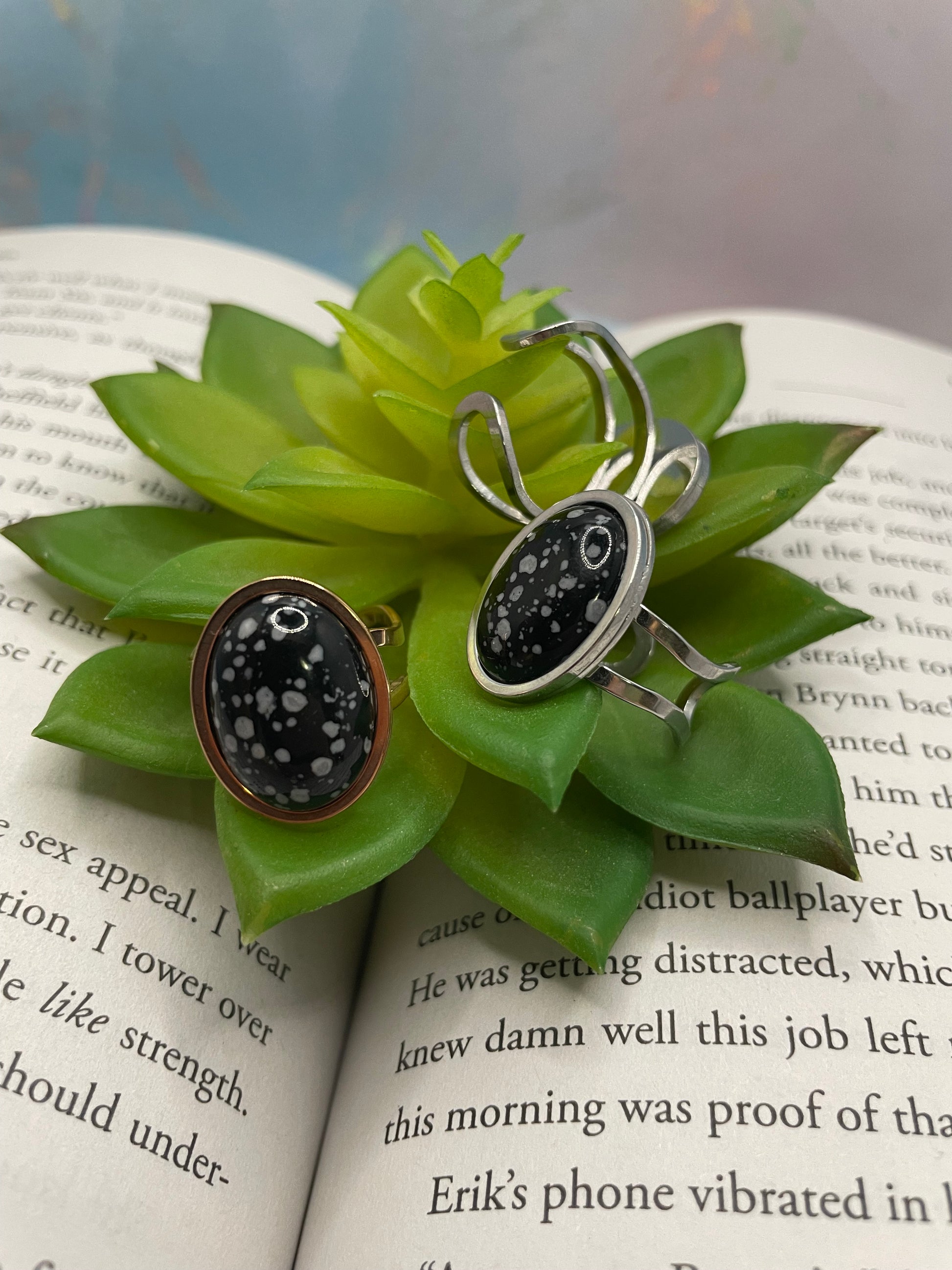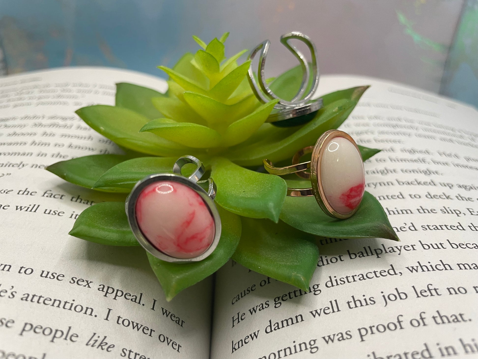 Chaque bague présente une surface cabochon lisse et un encadrement métallisé poli — parfaite pour un port quotidien ou pour ajouter une touche chic à votre tenue.