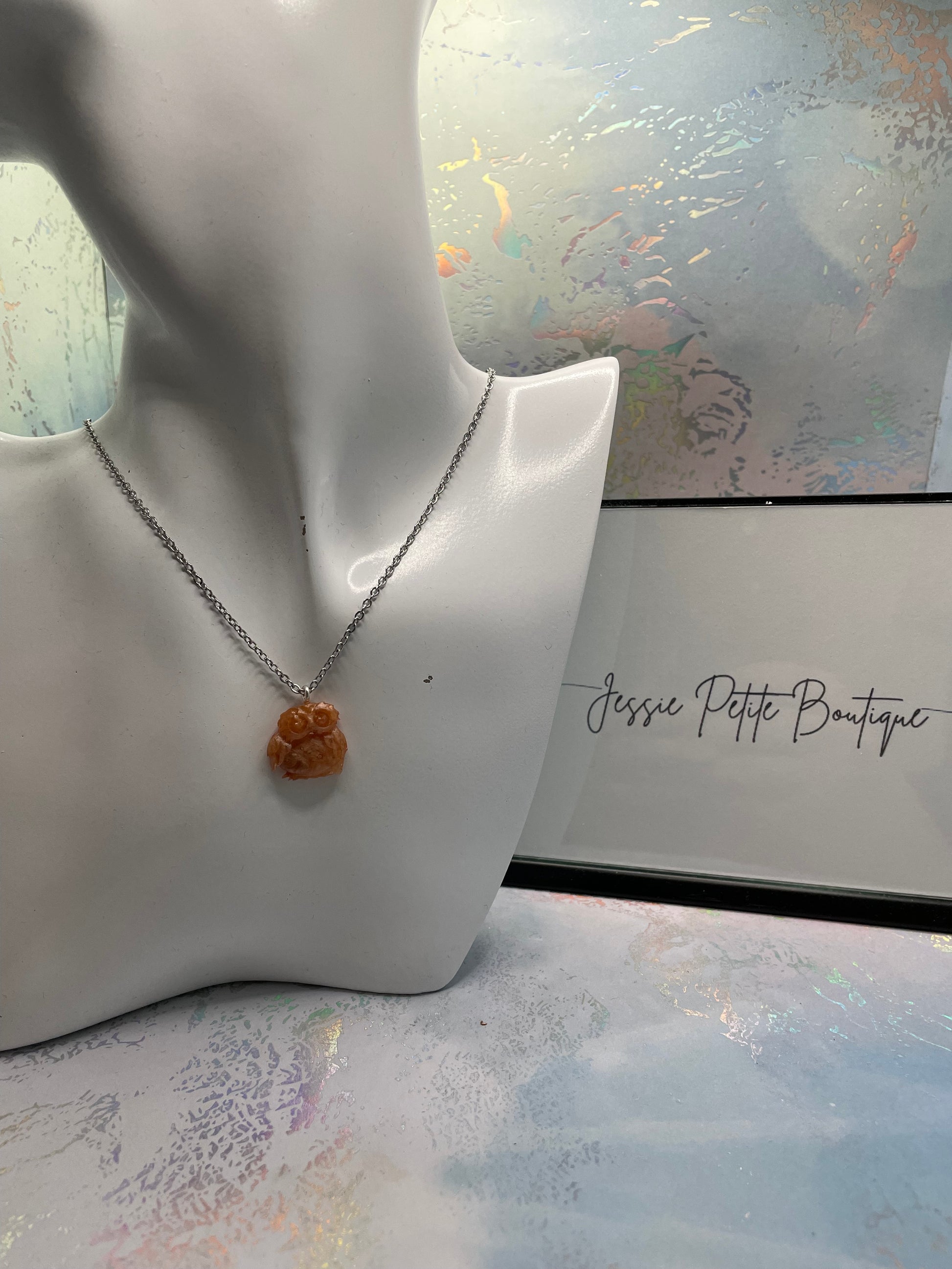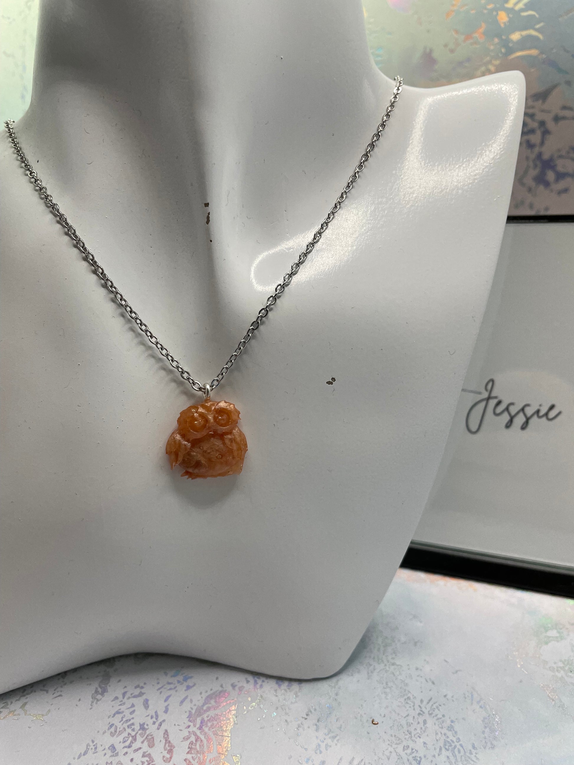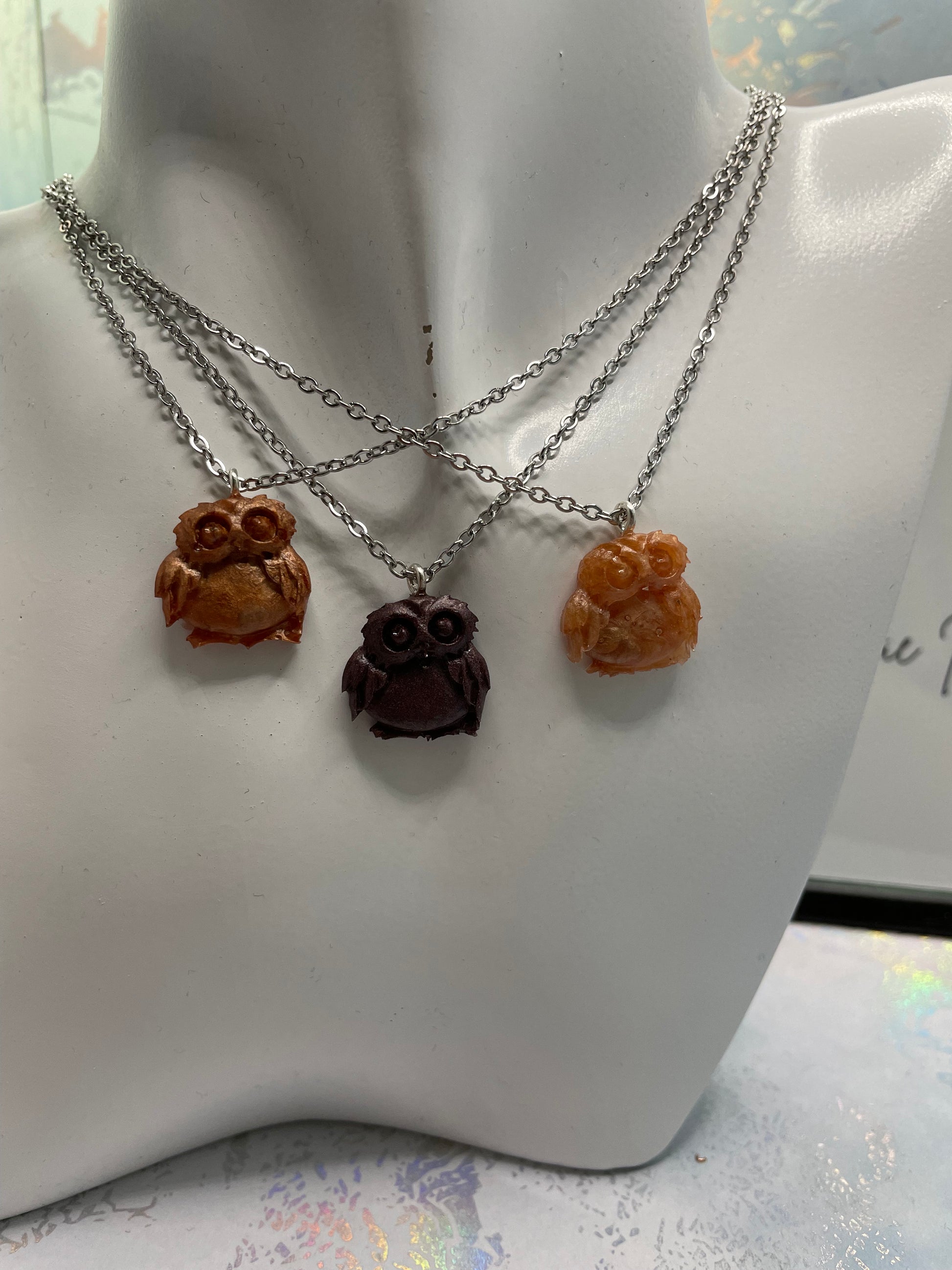 Imprégnez-vous du charme de la nature avec ce collier hibou . Doté d'un pendentif hibou magnifiquement détaillé en trois nuances de brun. Fabriqué en résine de haute qualité et poudre mica, ce pendentif est soigneusement conçu pour mettre en valeur un riche mélange de bruns, pour un effet réaliste et accrocheur.