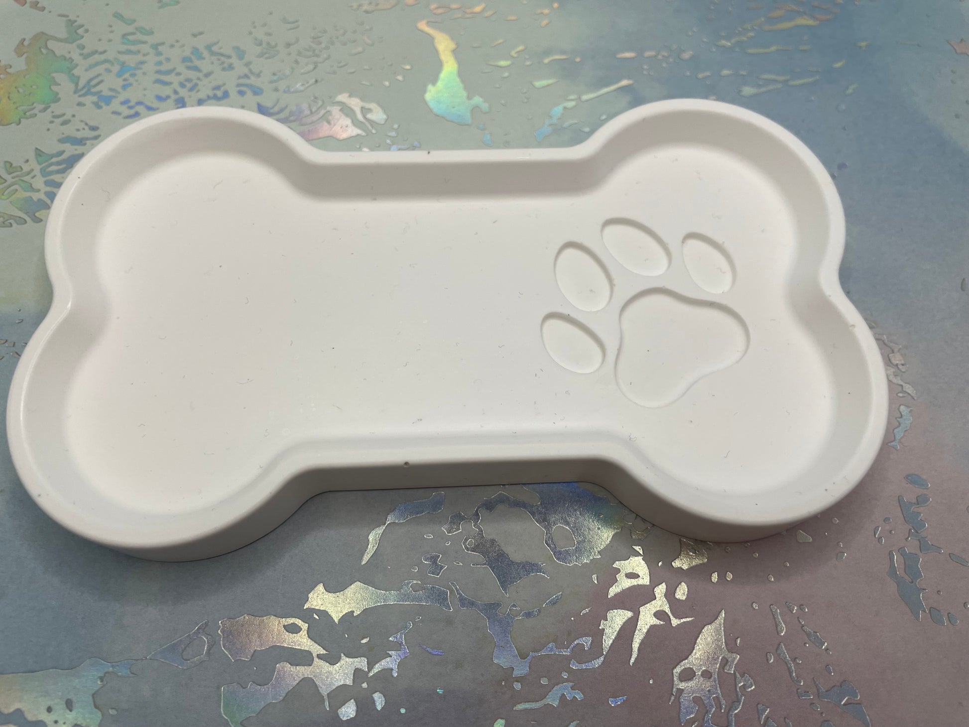 Plateau Os avec Empreinte de Patte en Éco-Résine Blanc
