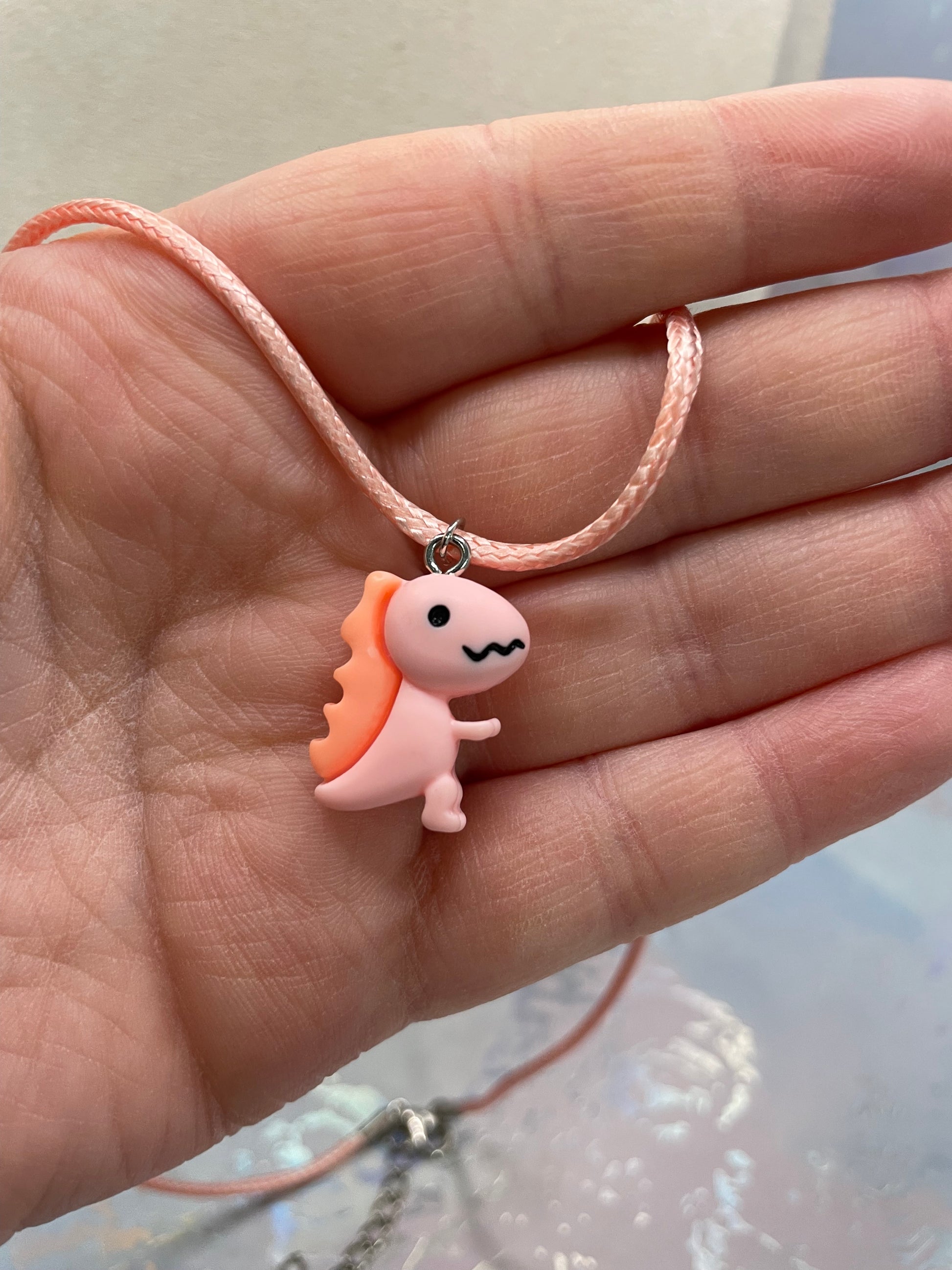 Ce joli collier met en vedette un pendentif dinosaure rose au design doux et arrondi, avec une expression amusante et attachante. Léger et agréable à porter, il est monté sur une corde rose qui complète parfaitement son style ludique. Un choix parfait pour les amateurs de dinosaures, petits et grands, que ce soit pour un usage quotidien ou comme cadeau plein de charme.