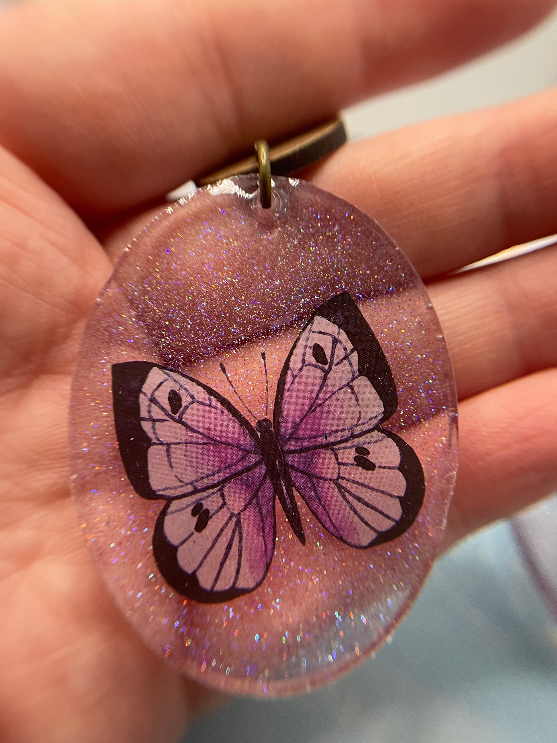 - Matériaux mixtes : La mélange du bouton en bois et de la résine scintillante avec les papillons font des boucles d'oreilles son attrait artistique.