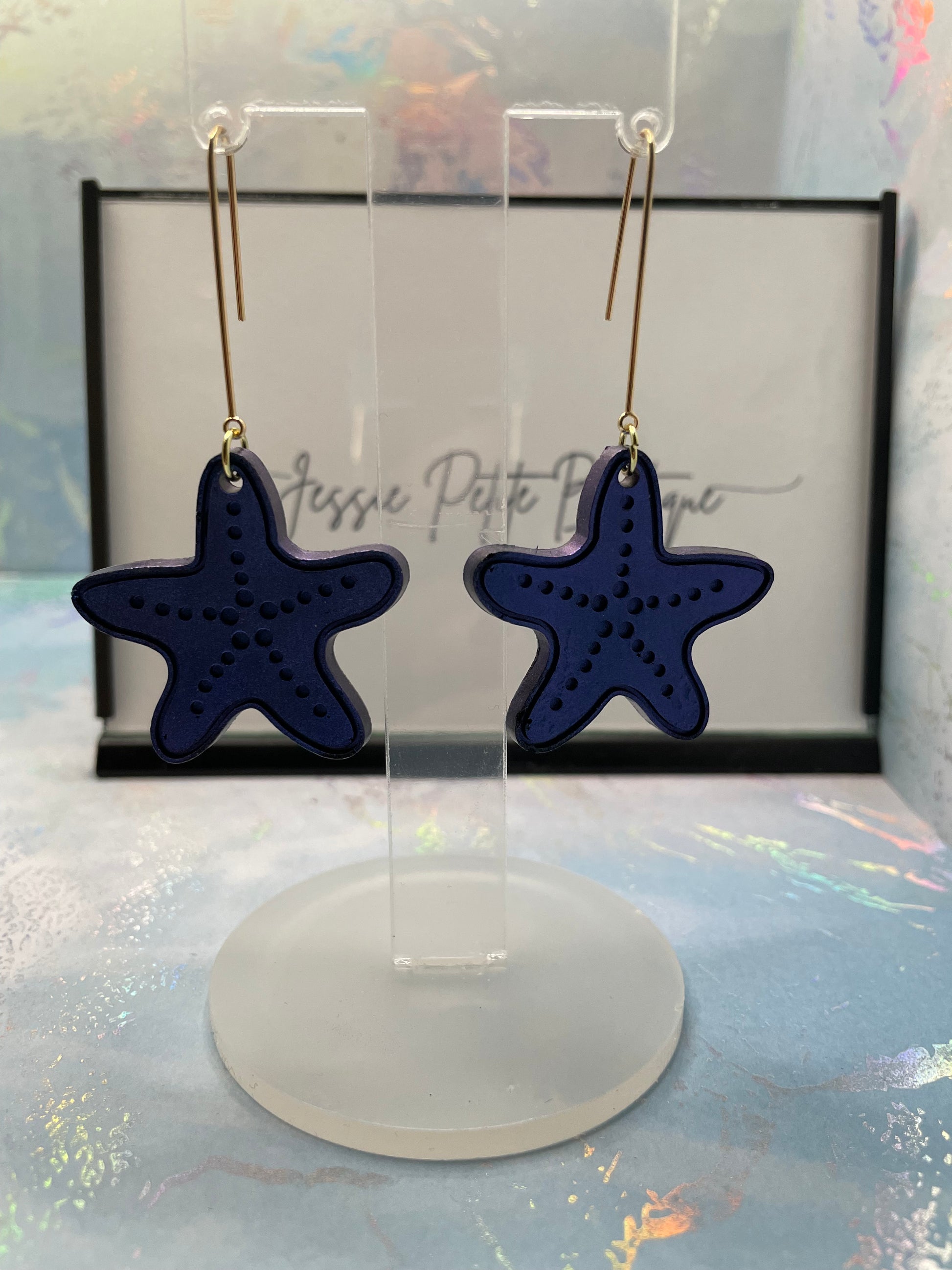 Ces superbes boucles d'oreilles étoiles de mer arborent une magnifique teinte mauve caméléon, sublimée par le scintillement de la poudre de mica. Leurs détails en or plaqué 18 carats ajoutent une touche d'élégance, ce qui en fait un accessoire parfait en toute occasion.