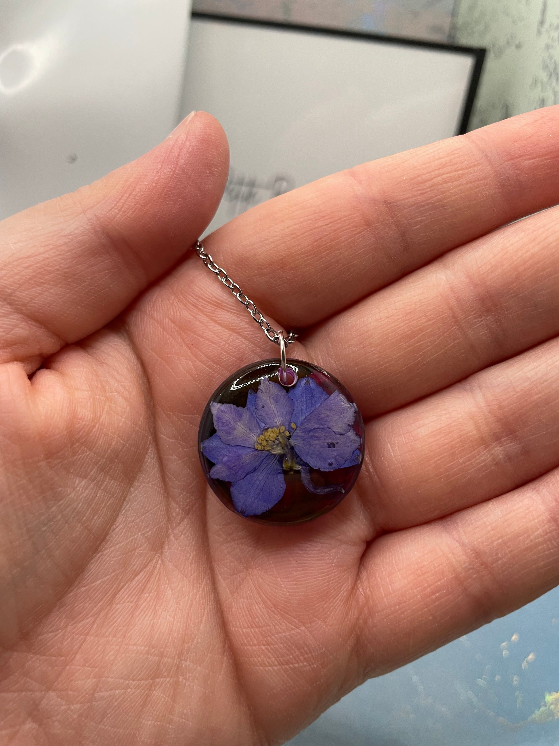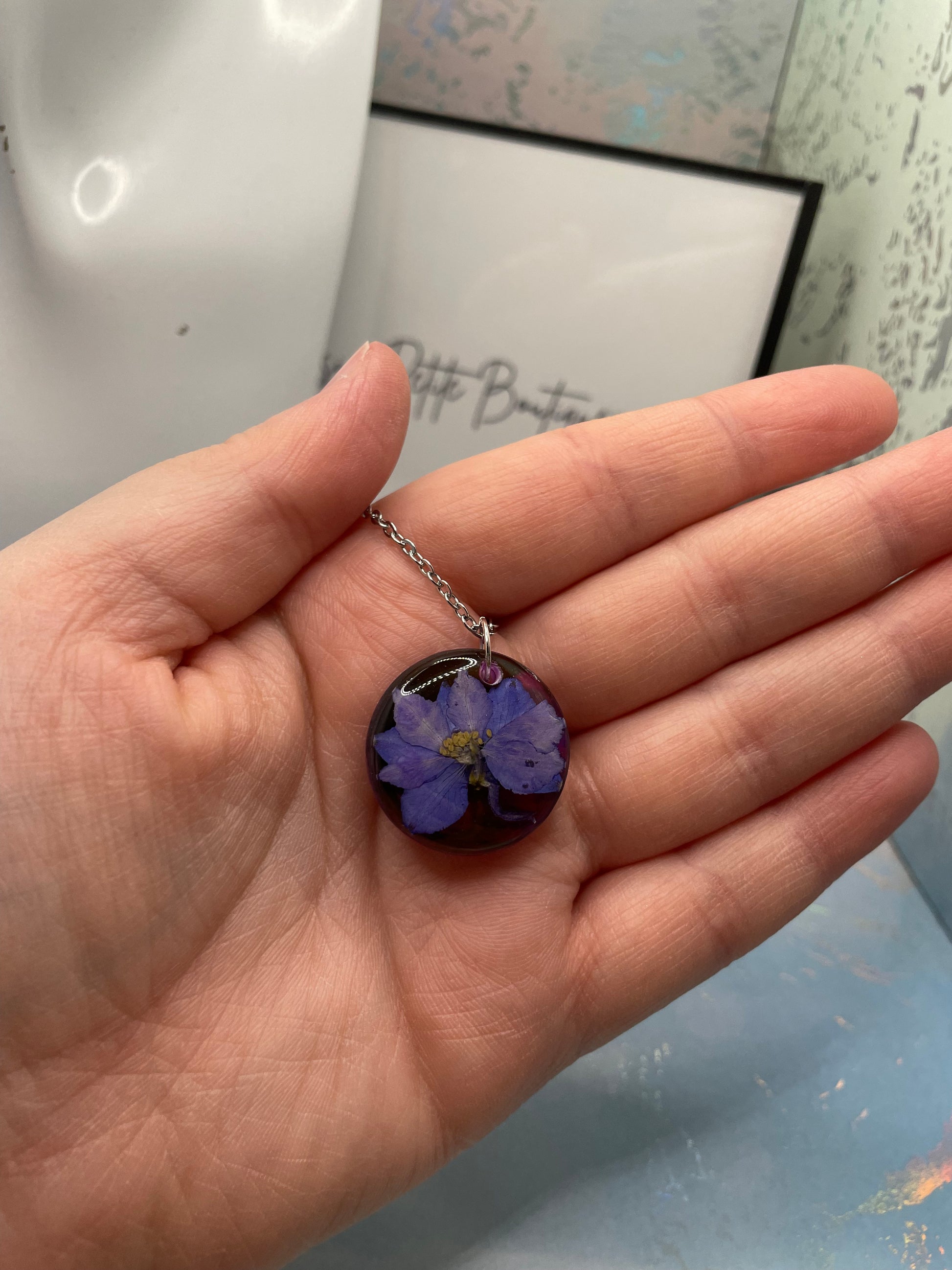 - Matière : Fleur séchée, encre à alcool, résine