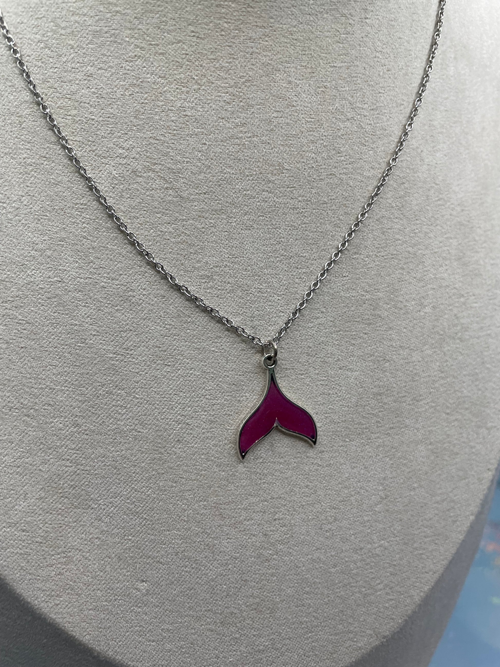 Apportez une touche océanique à votre tenue avec ce délicat collier queue de sirène. Le pendentif, aux courbes élégantes et aux reflets mauve, capte la lumière avec douceur tout en conservant une allure raffinée. Réalisé en résine avec de la poudre mica, il offre une belle profondeur visuelle, rehaussée d’un contour argenté épuré.